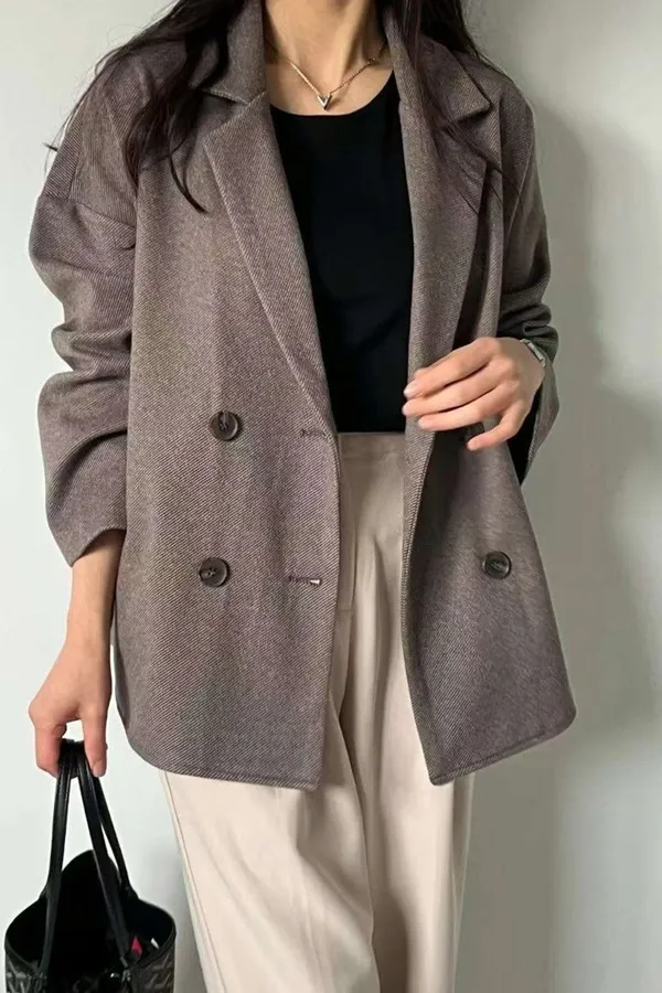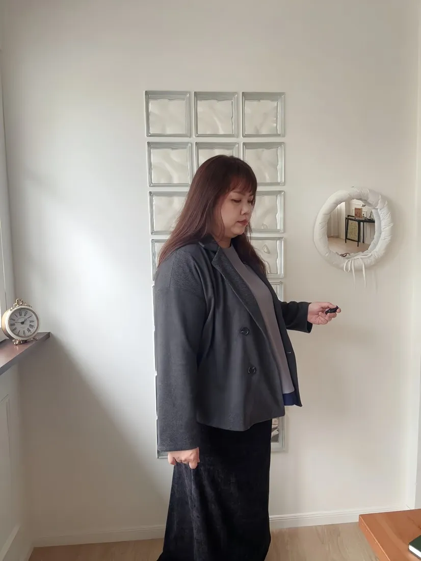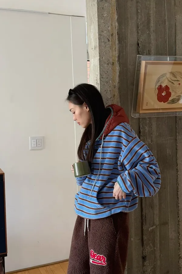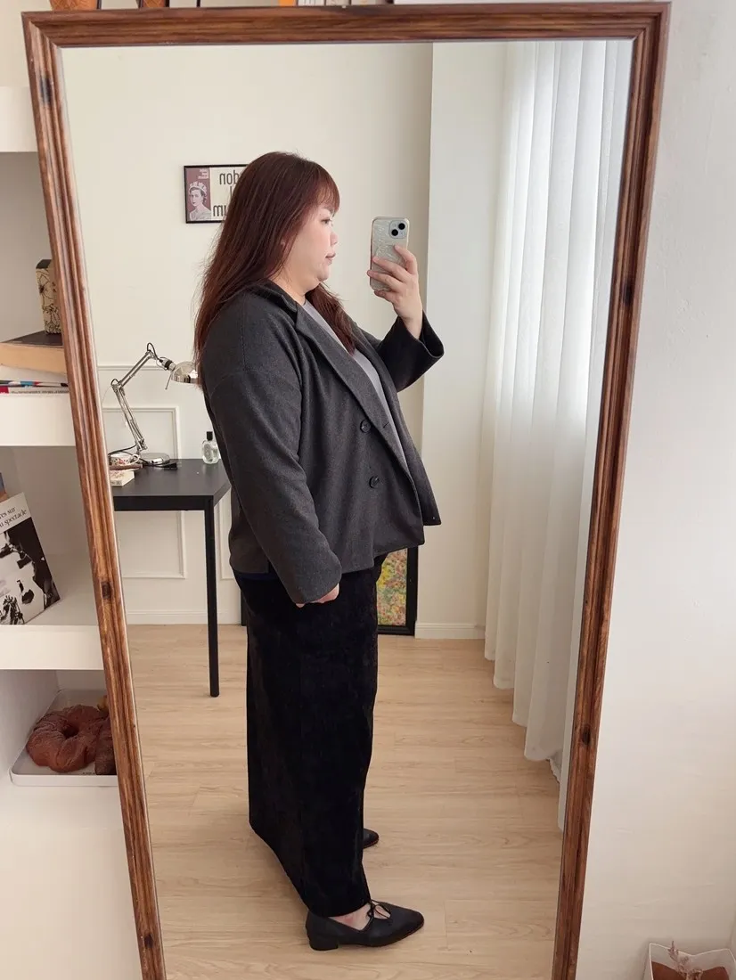不是太厚的布料,表面微微刷絨,很適合台灣的天氣穿著哦!