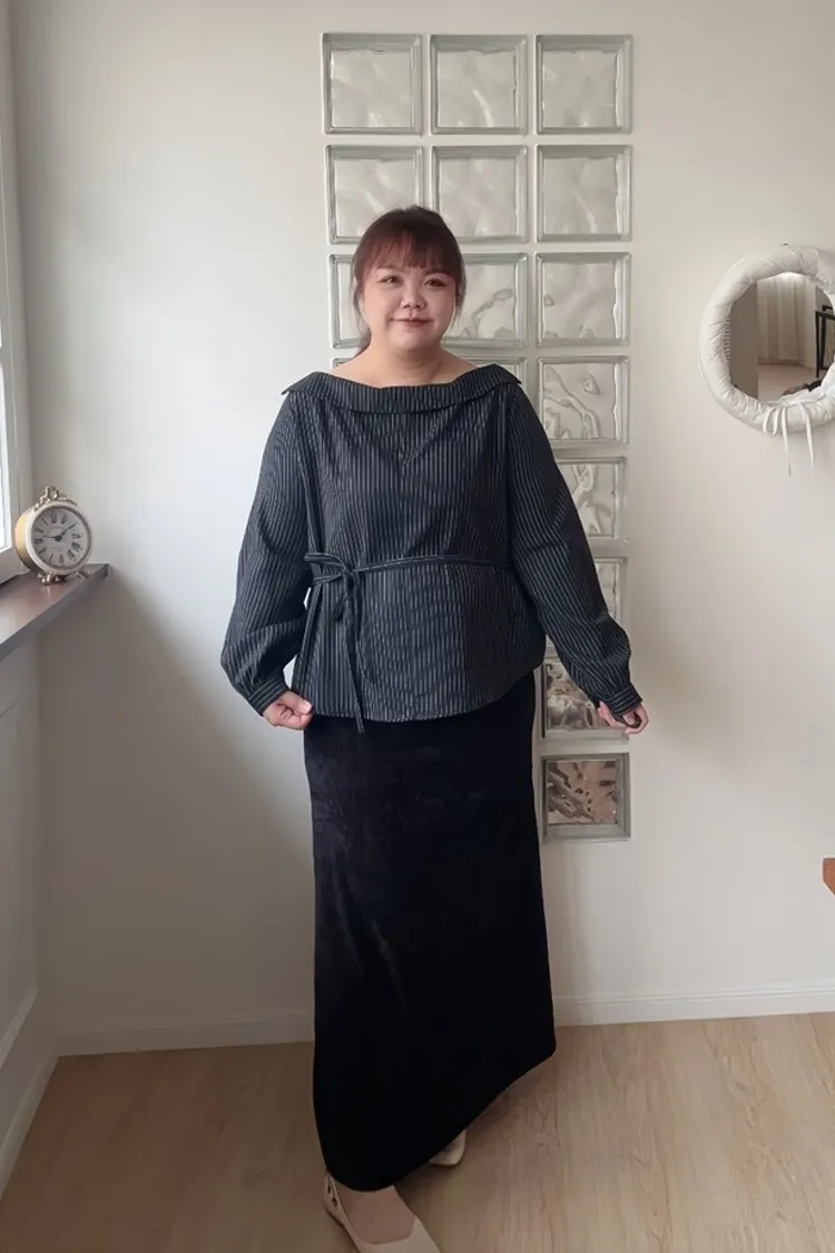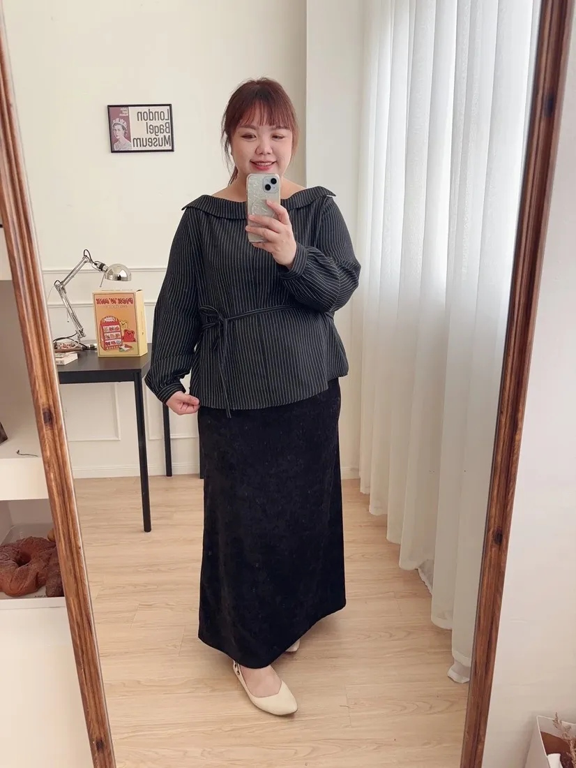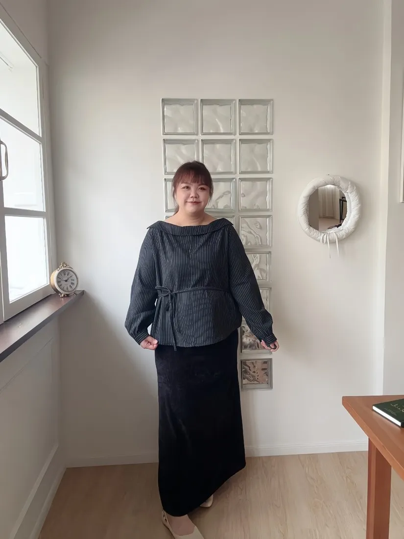 | L | 41-56 | 57 | 94 | 蓮妞穿會用到布料彈性,會有小腹形狀,要穿可以蓋住小腹的衣服哦 |