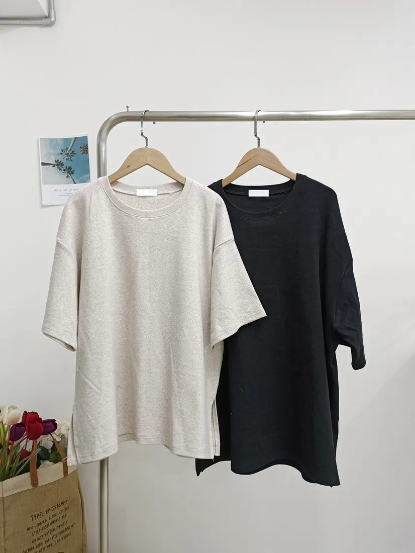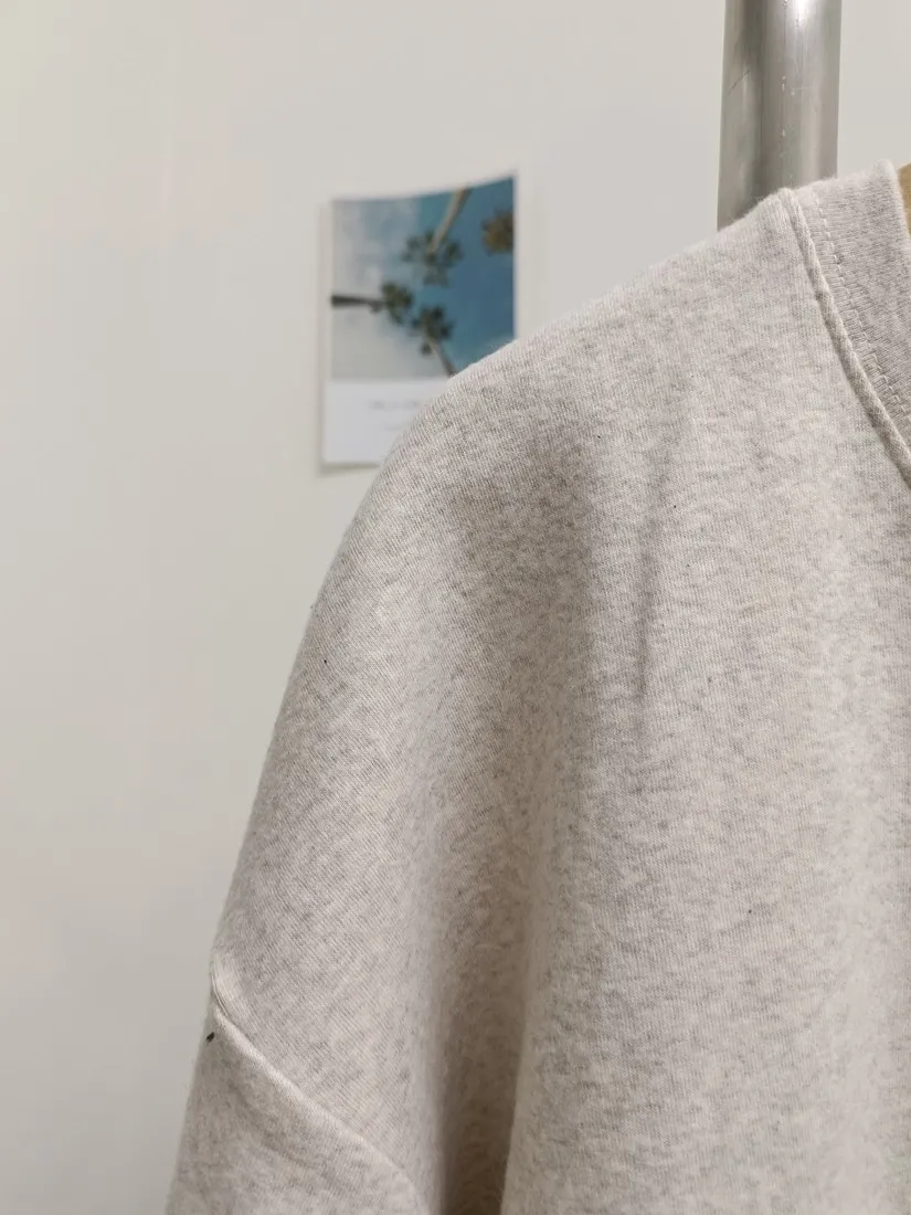 表面薄刷絨不會太厚,內裡是平滑的,布料還有彈性,舒服領口