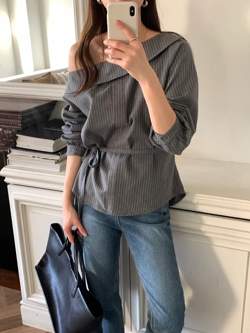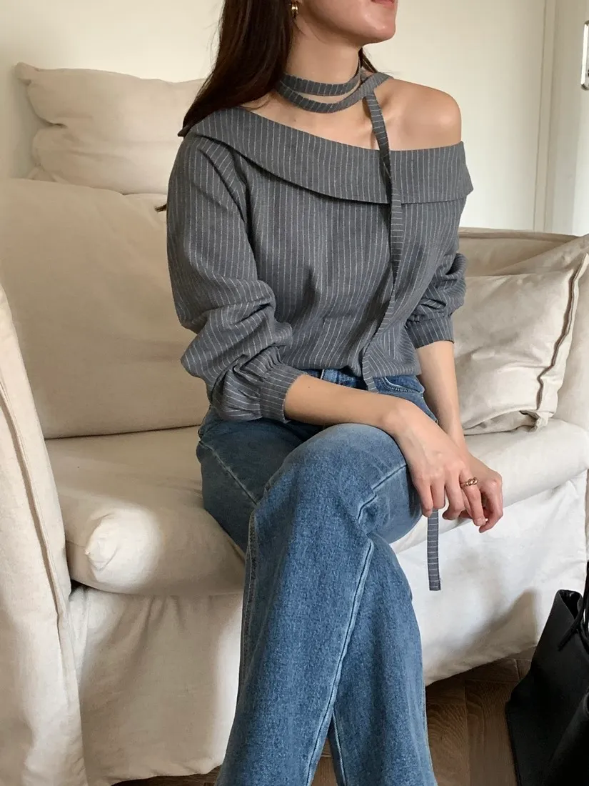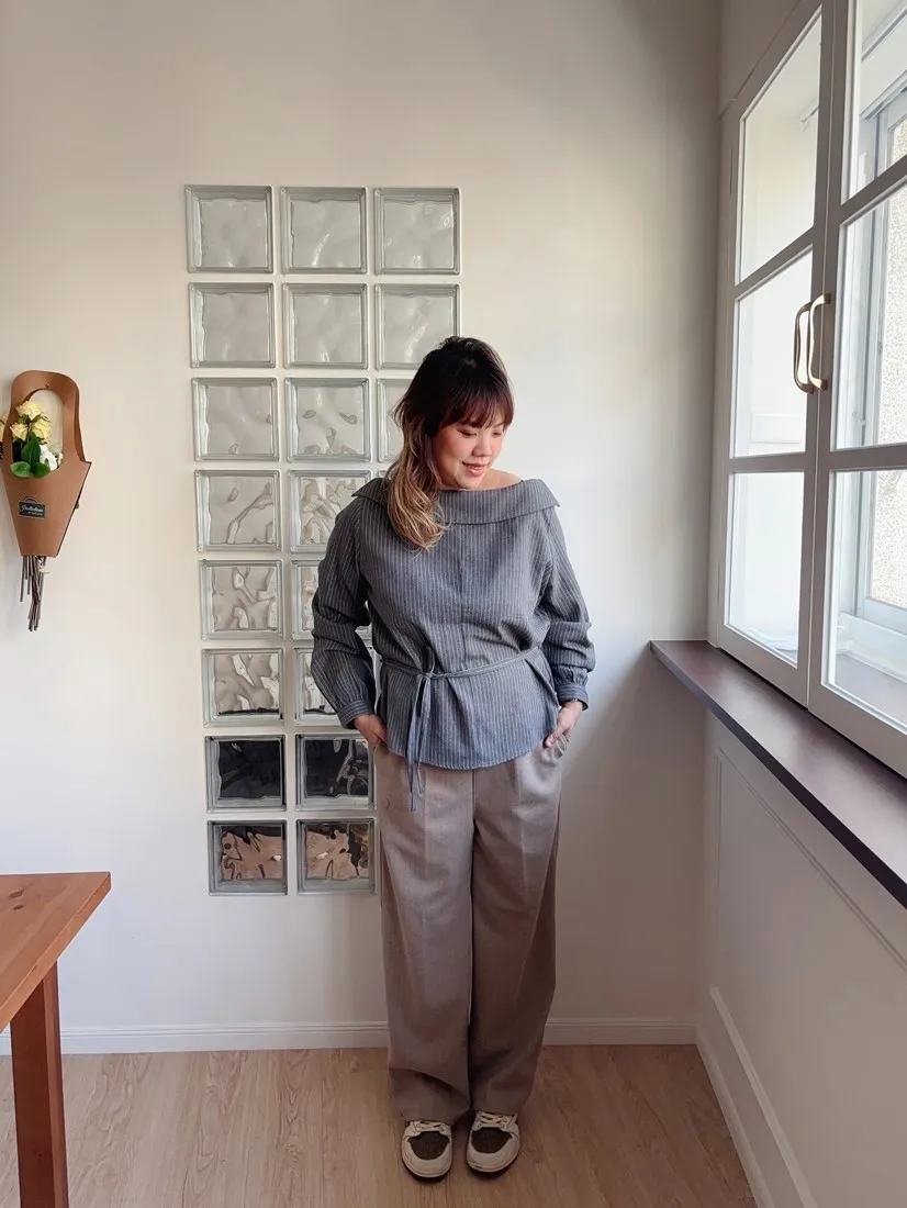 ✓ 船型領口設計,會微微露出一點點內衣肩帶
