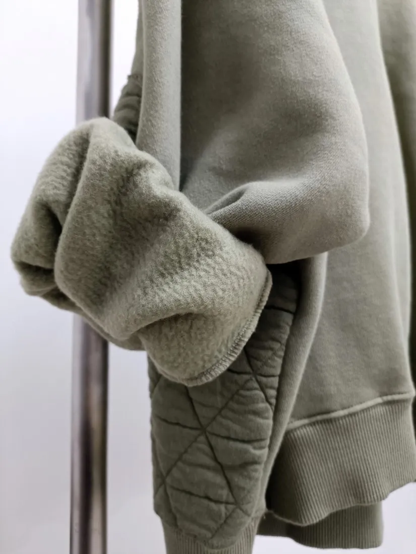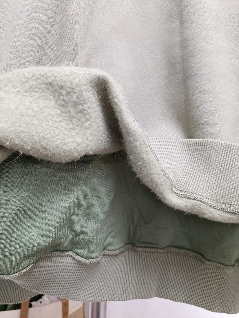 ✓ 異材質拼接,正面棉質,內裡有薄刷毛;背面衍縫材質,內裡無刷毛