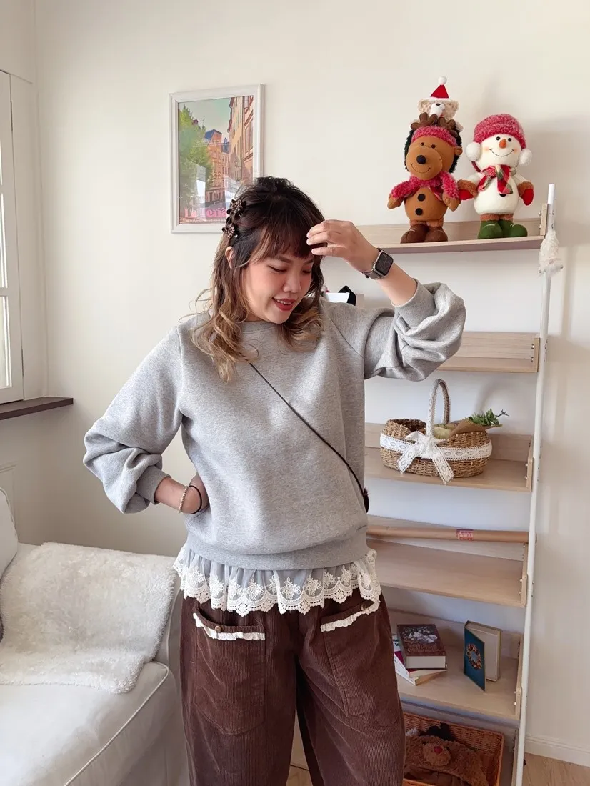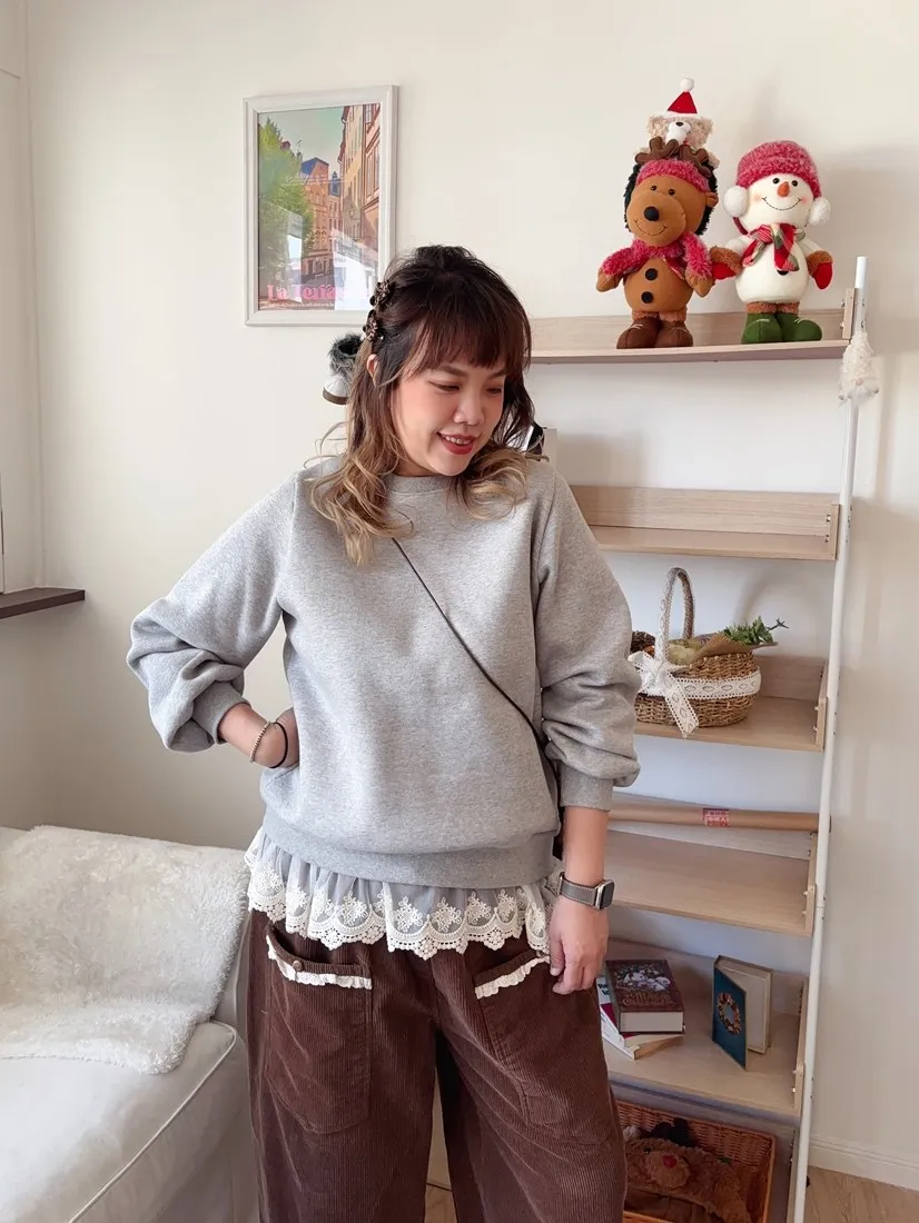 ✓ 正面二口袋,口袋處蕾絲花邊裝飾