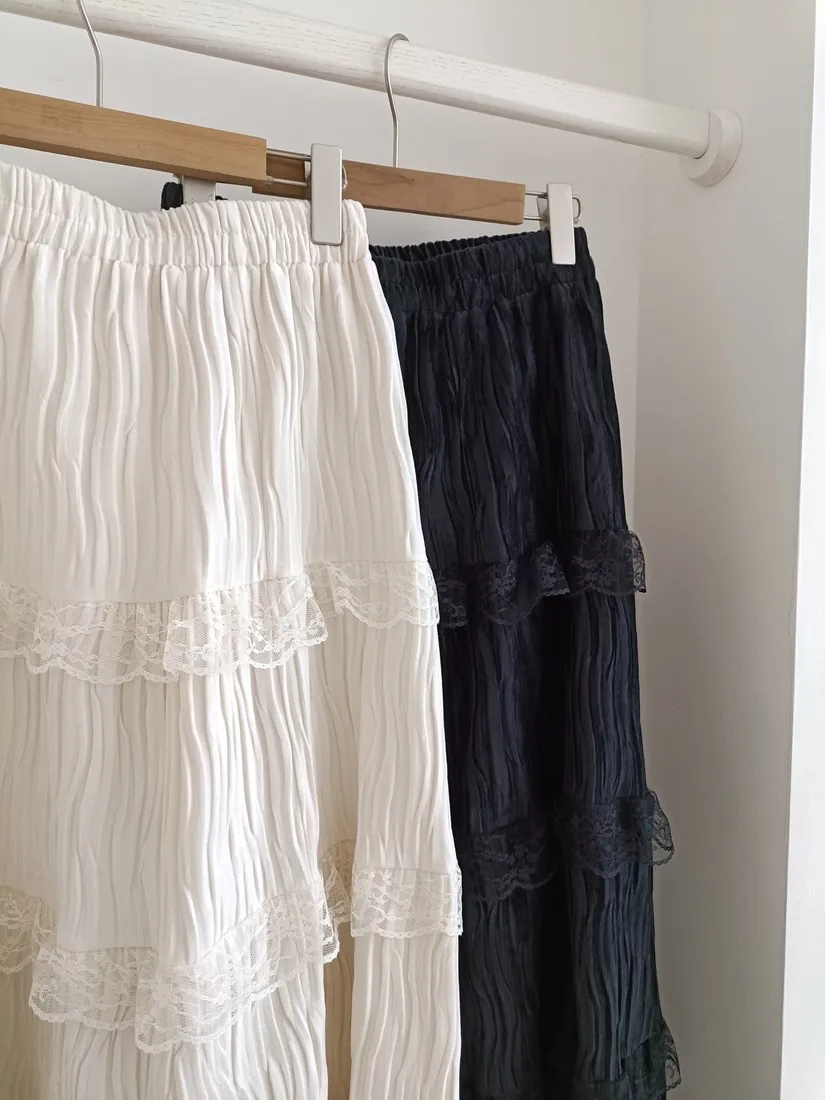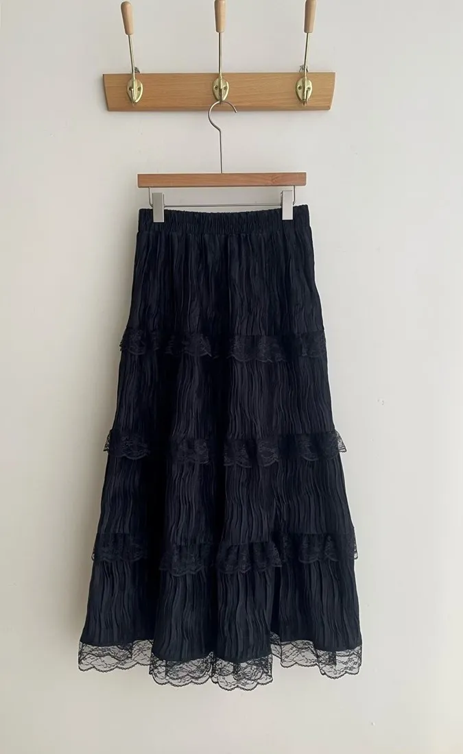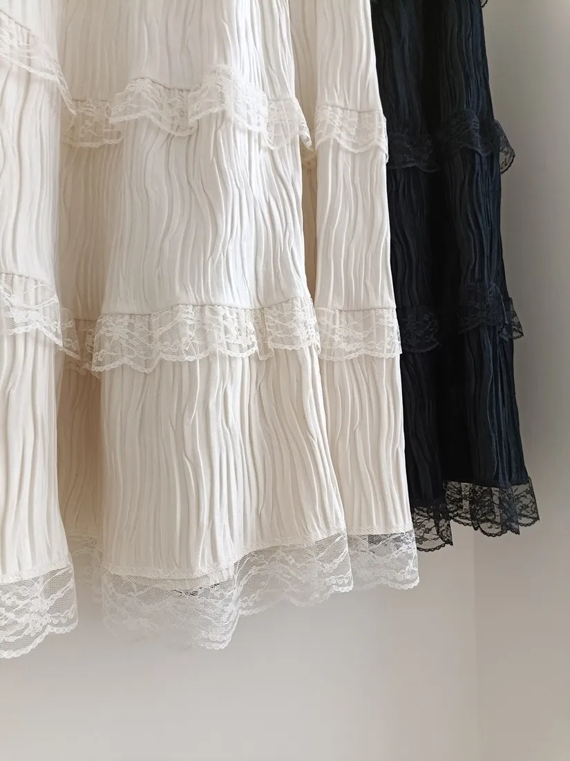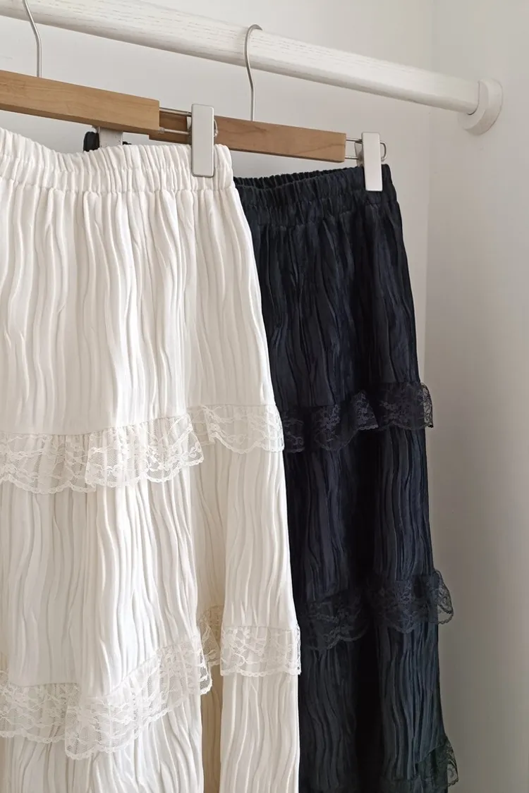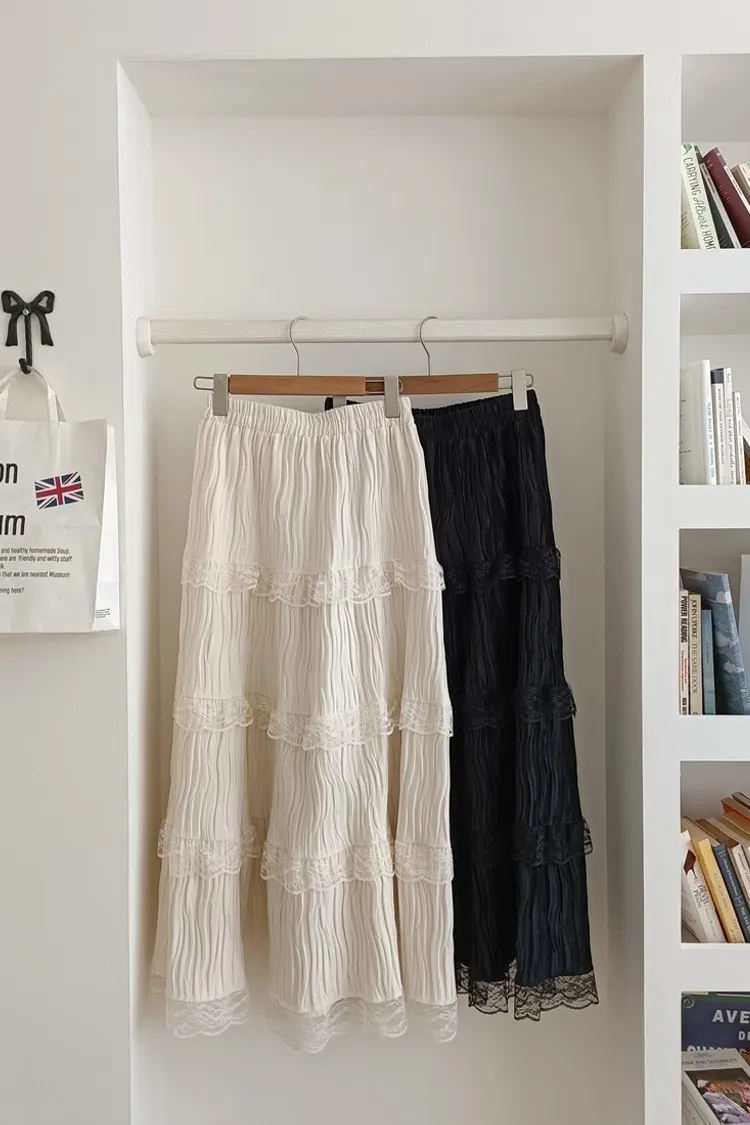 ✓ A字蛋糕裙版型,蛋糕分層線蕾絲裝飾