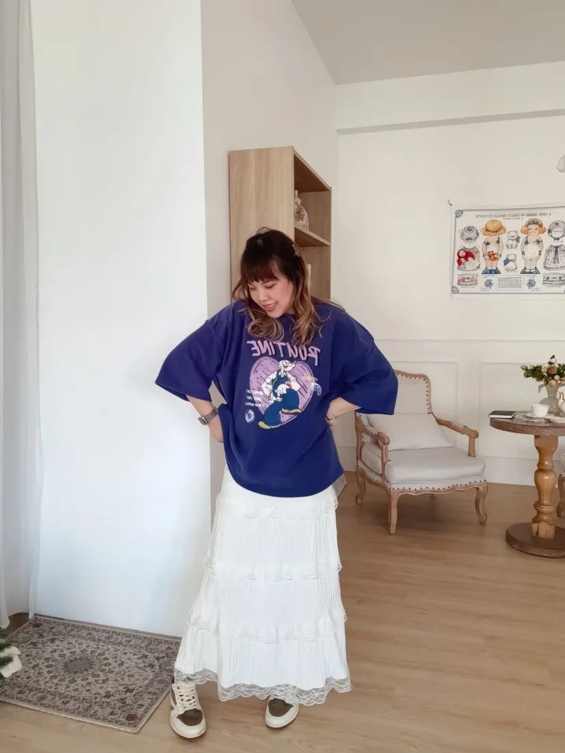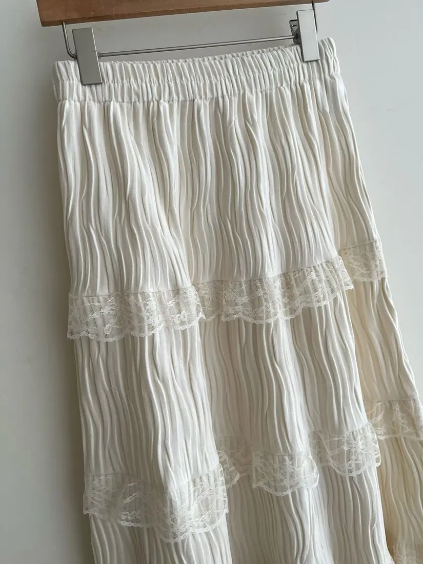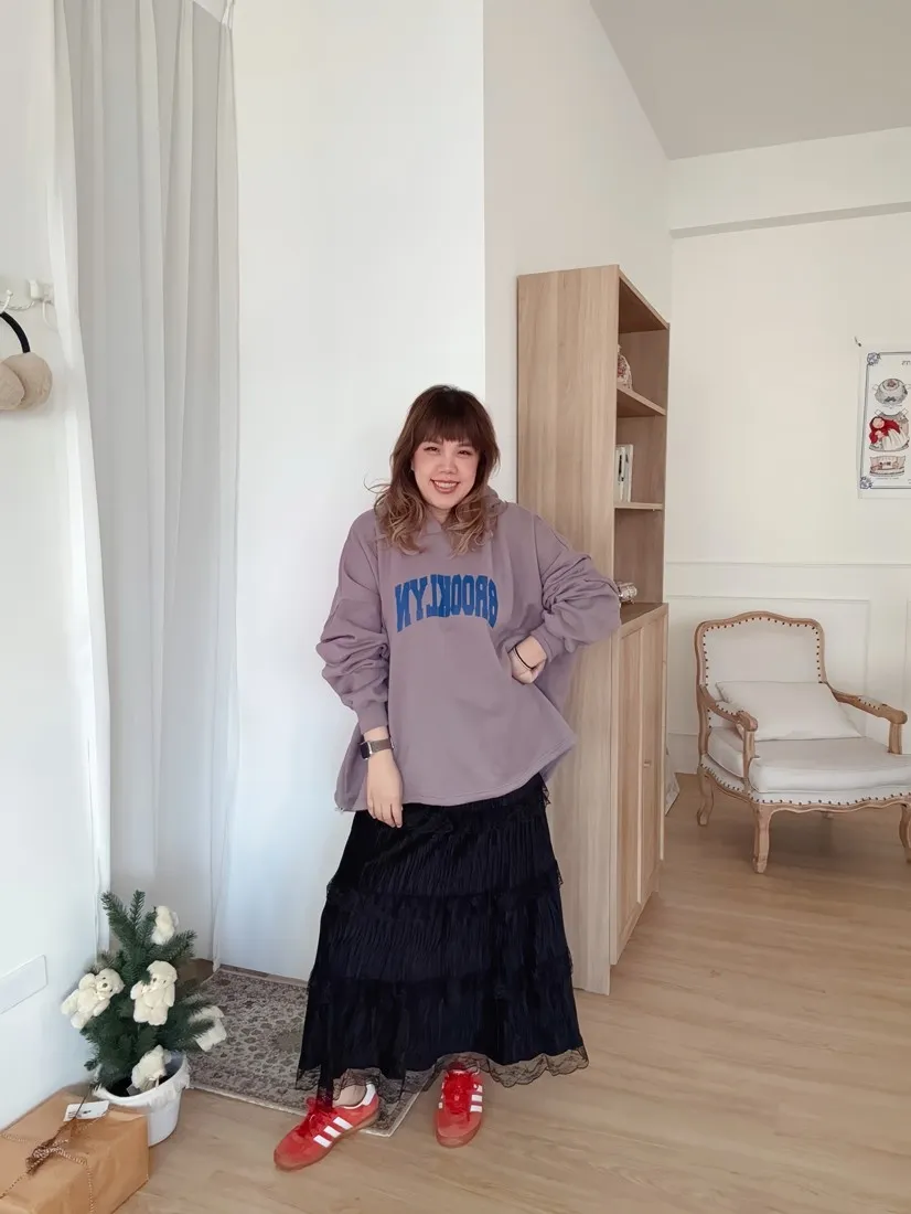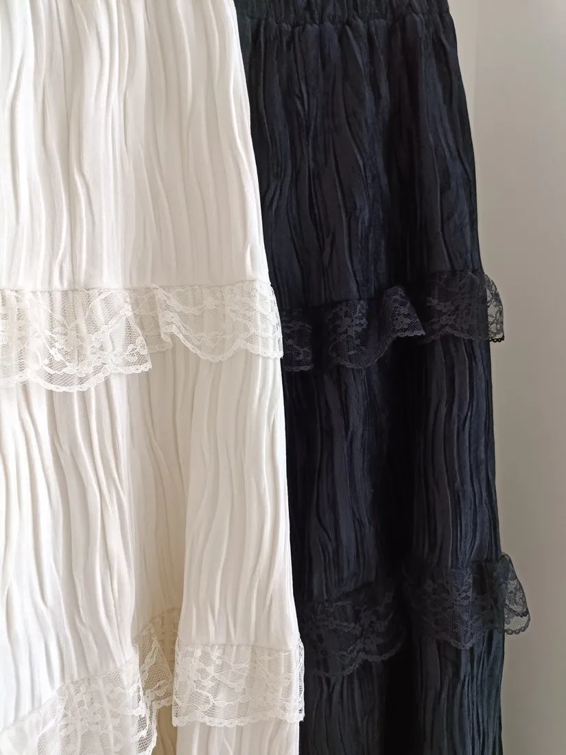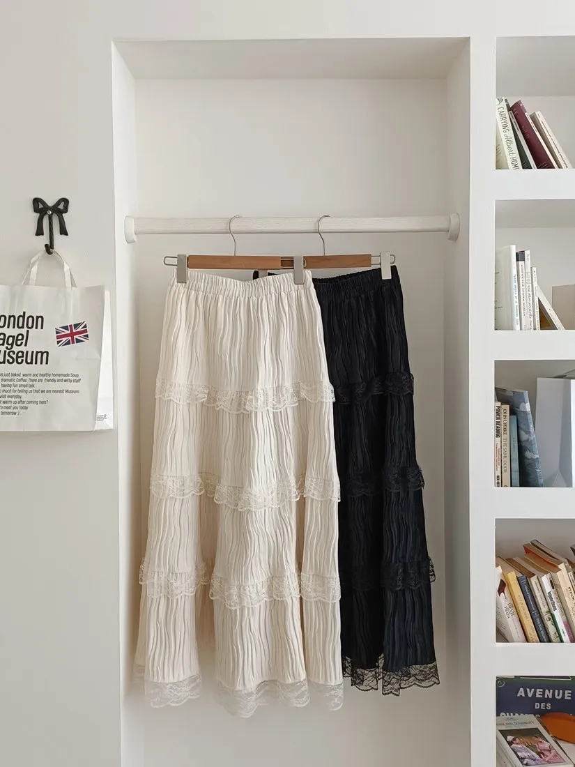 ✓ A字蛋糕裙版型,蛋糕分層線蕾絲裝飾