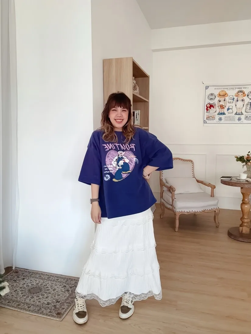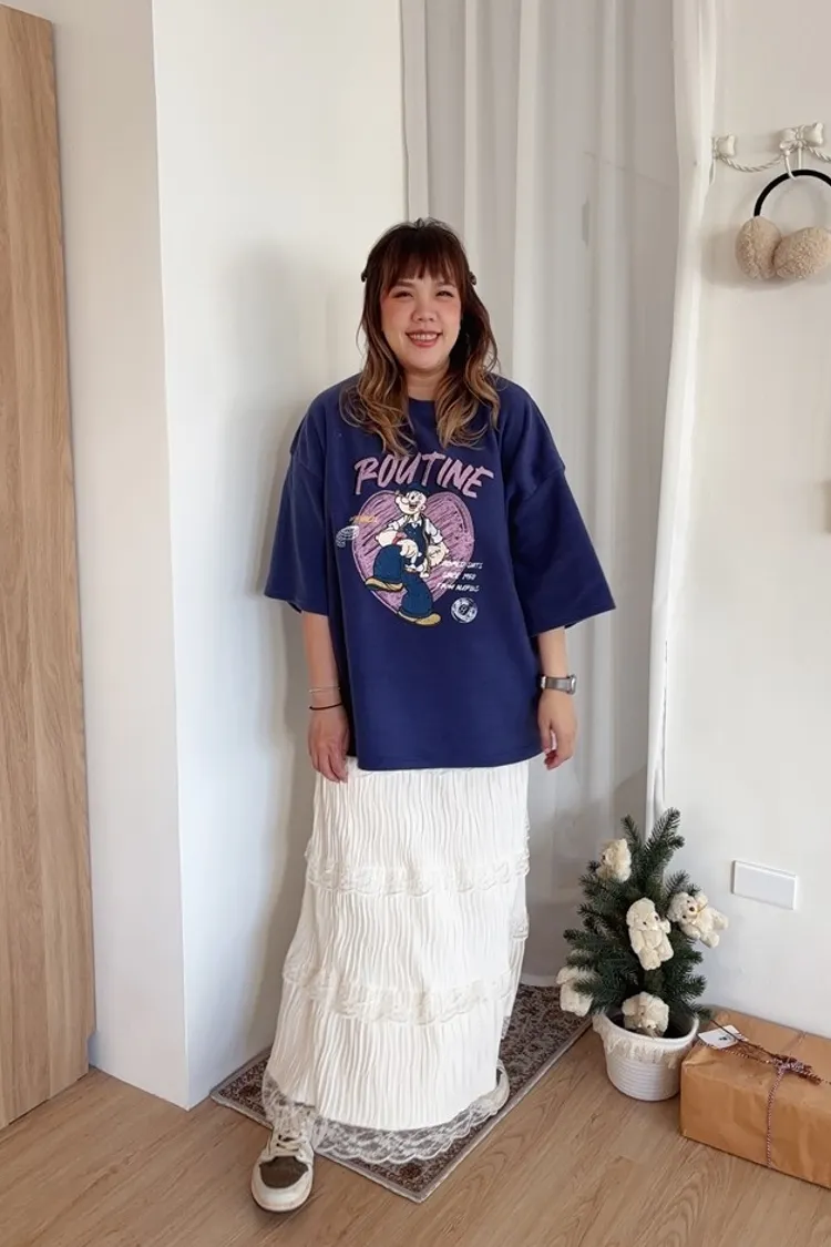 百褶呈現一種波浪感,穿上更增添浪漫感