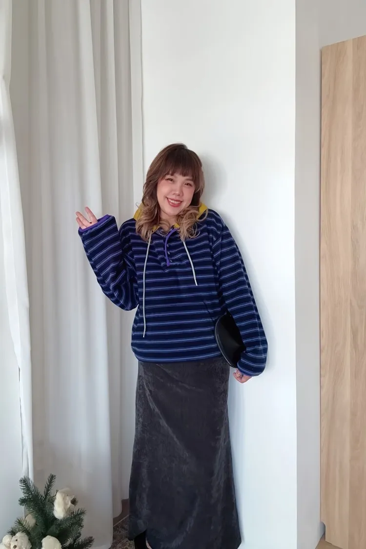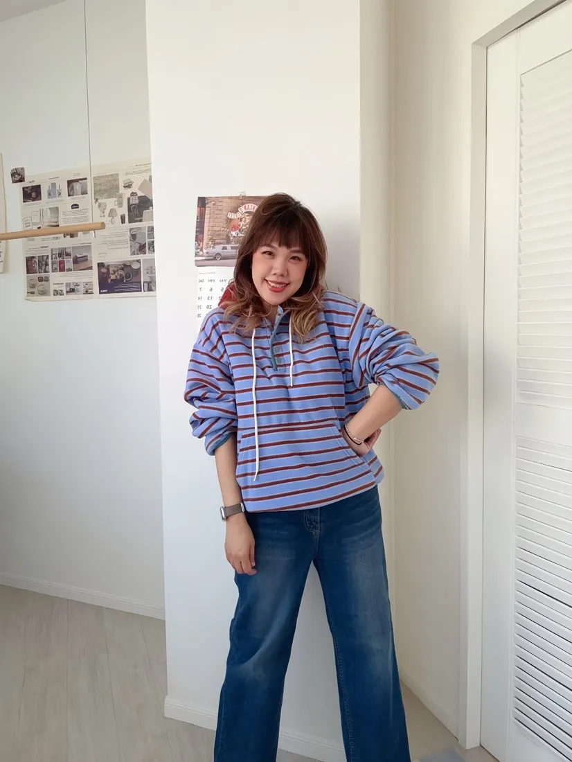 ✓ 領口、袖口、下擺滾跳色邊,滾邊有彈性