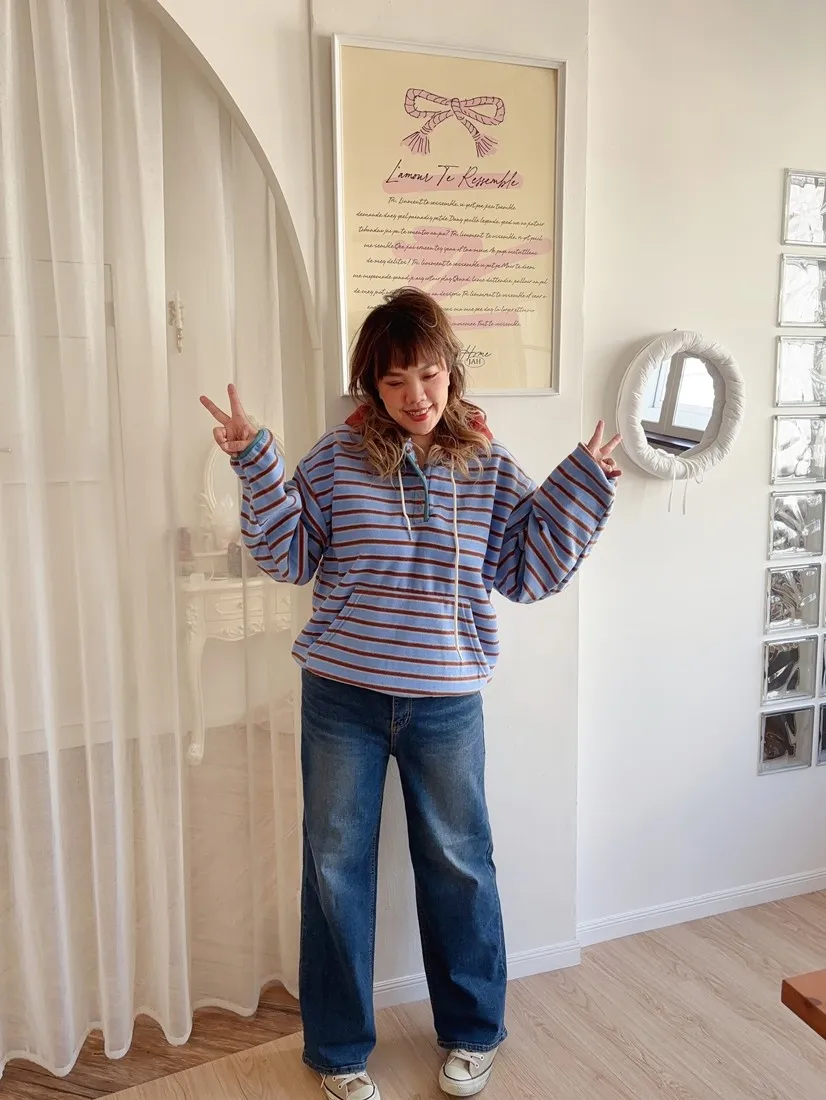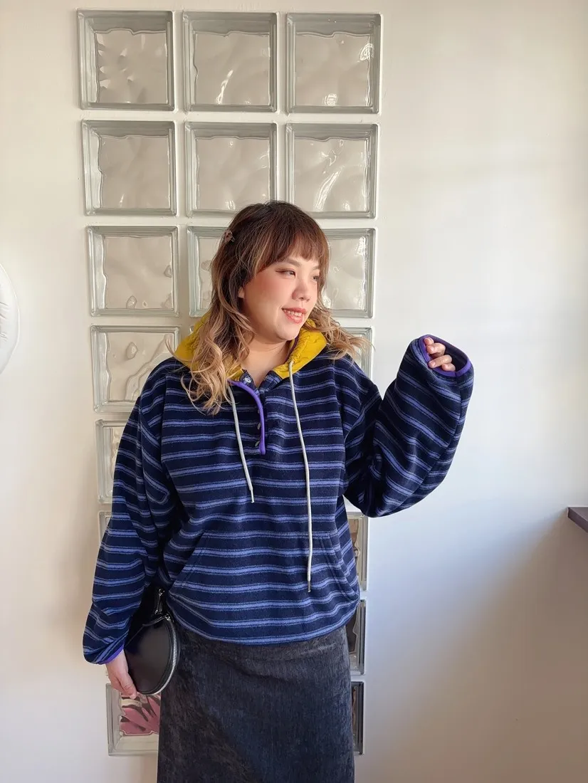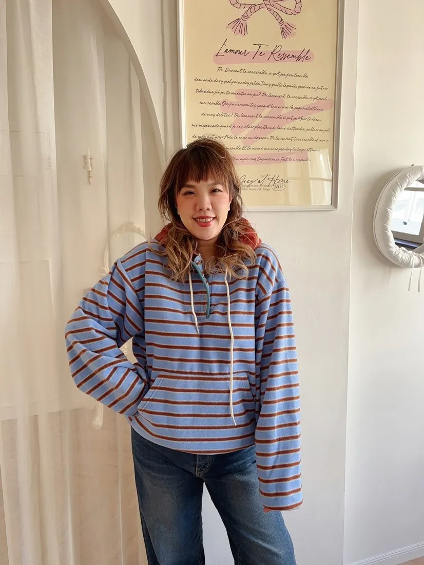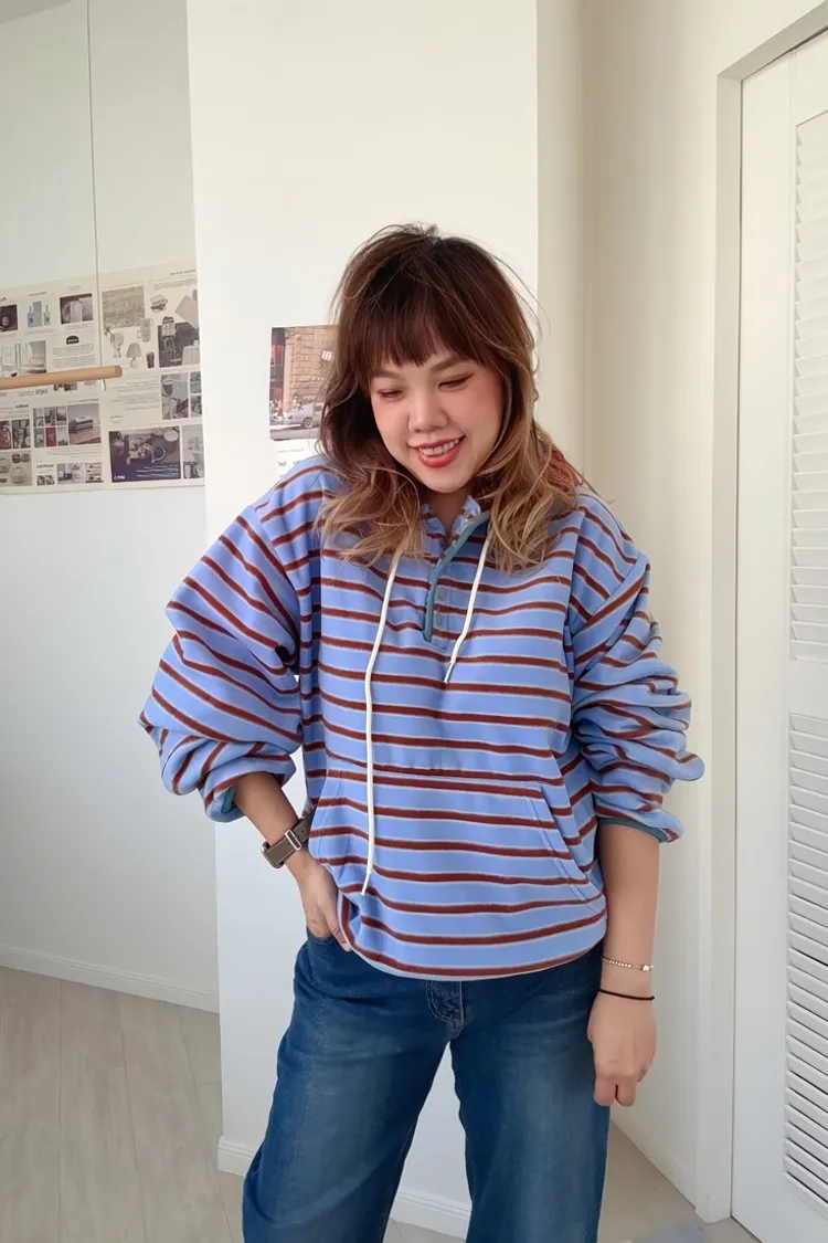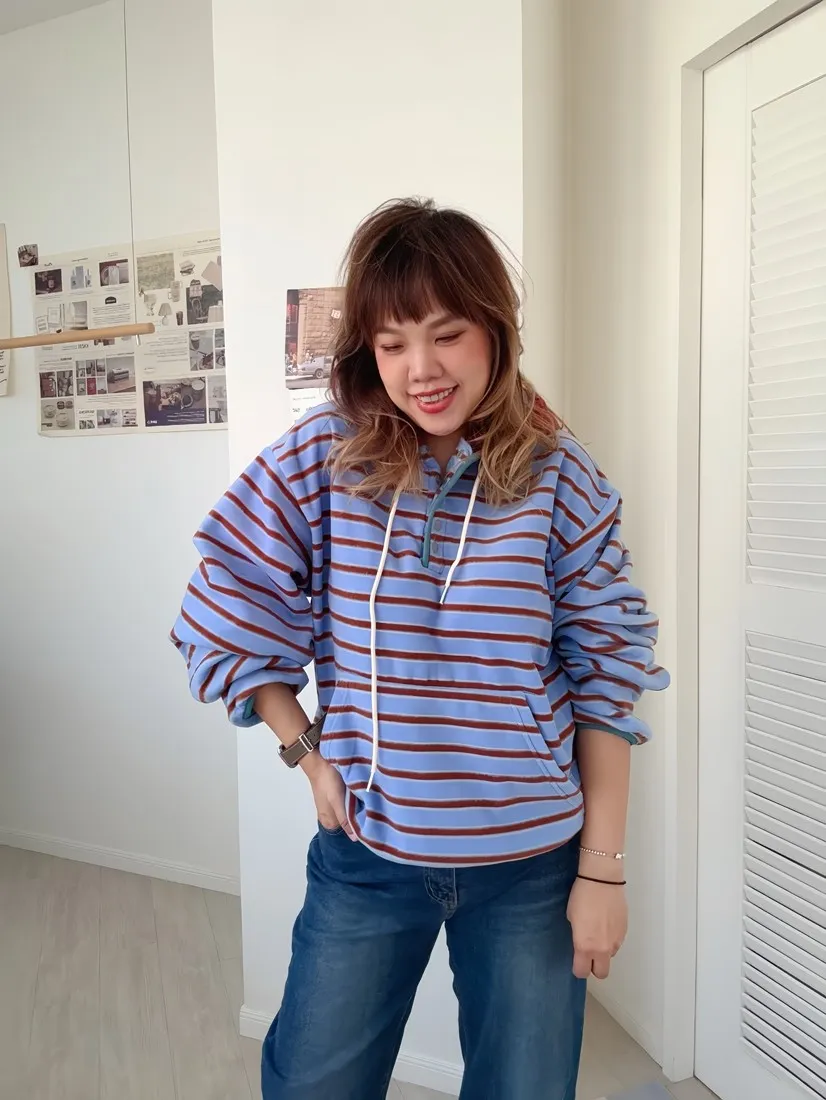 ✓ 連帽設計,領口有開釦
