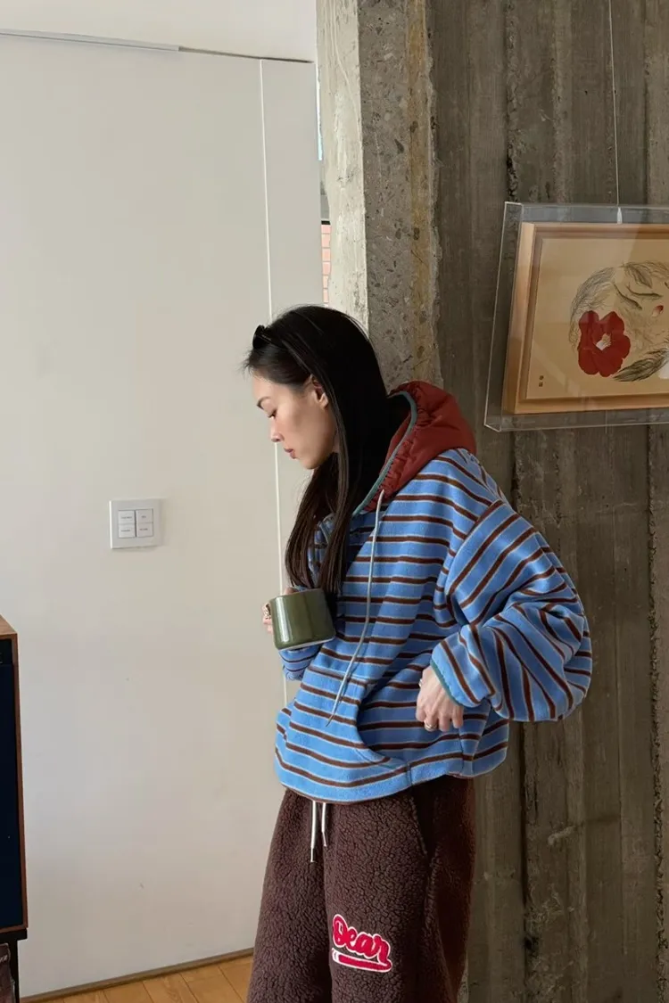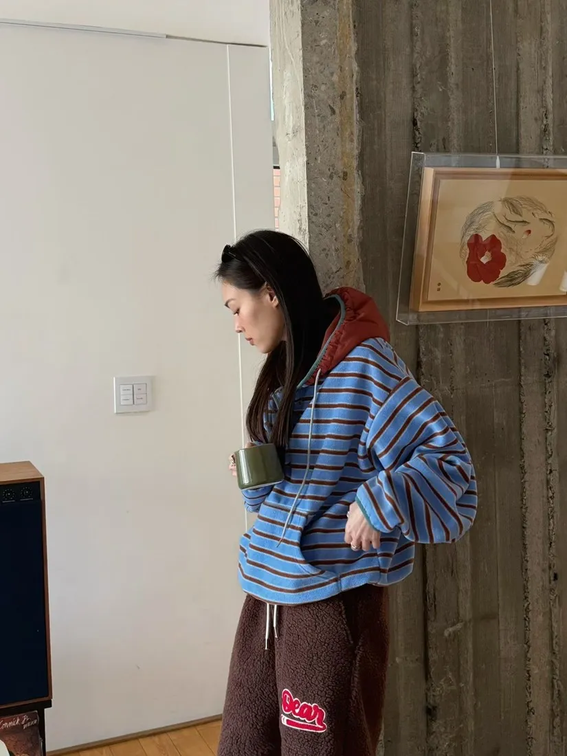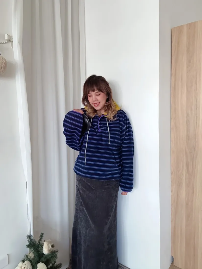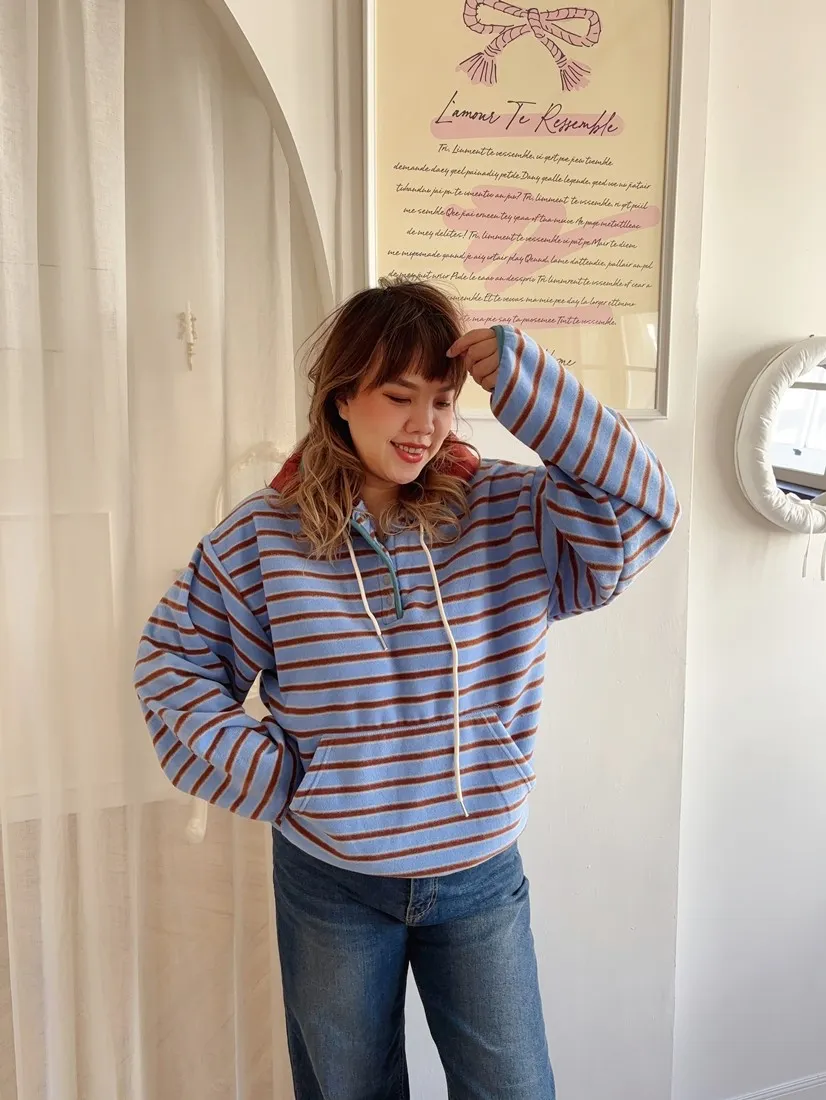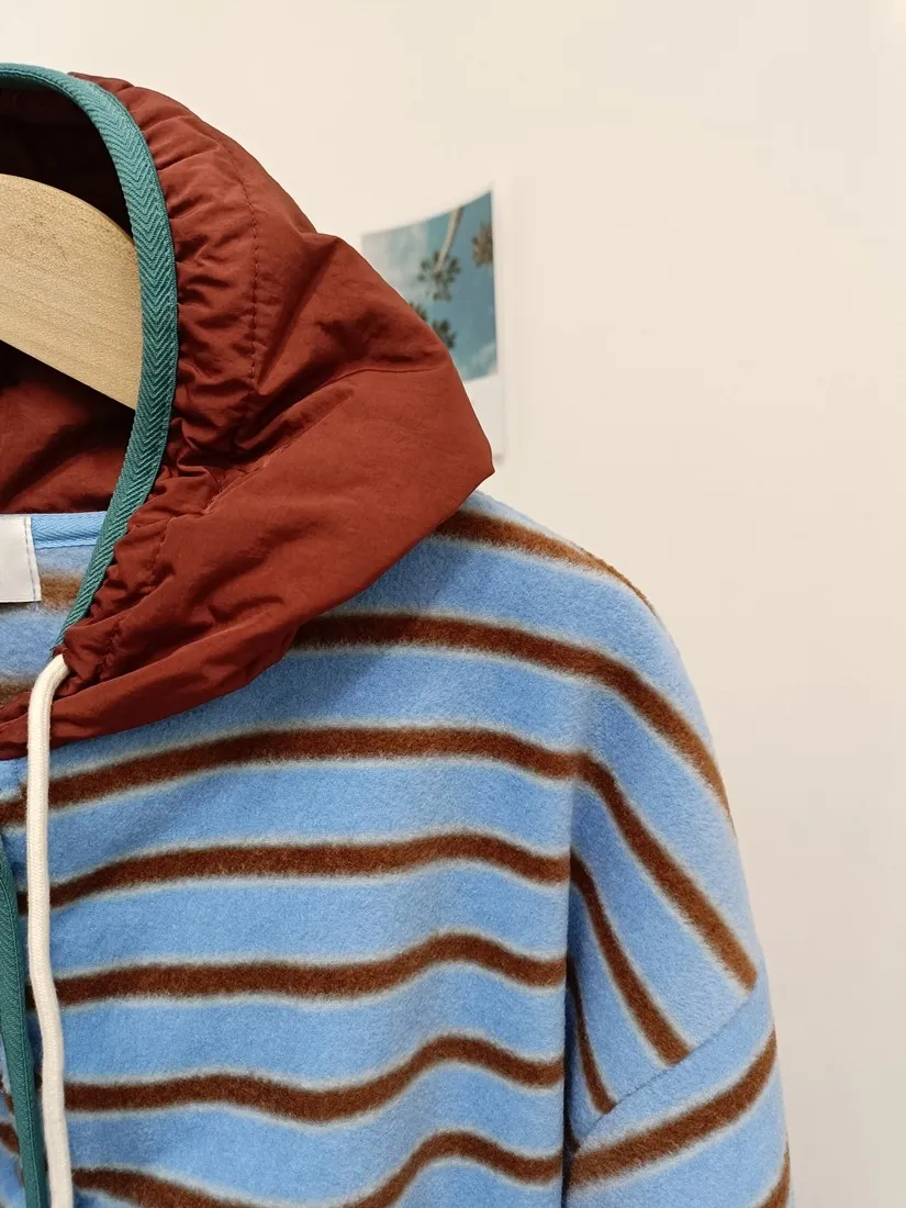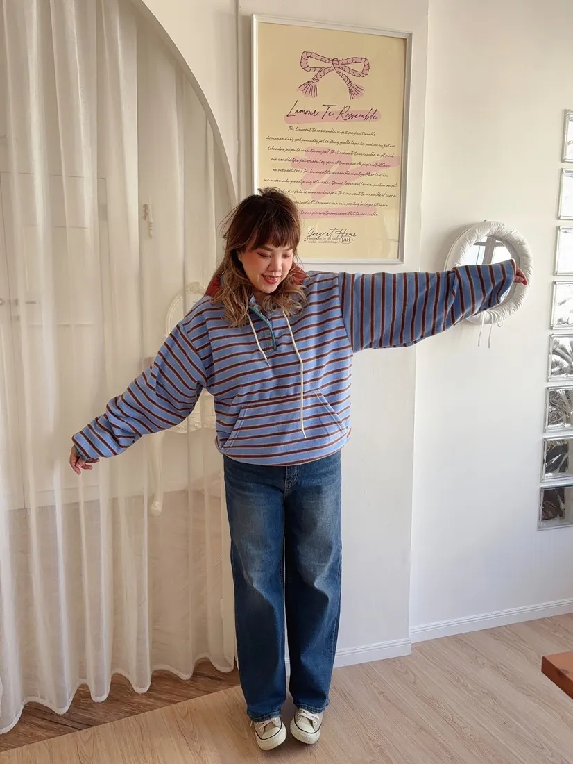 ✓ 連帽設計,領口有開釦