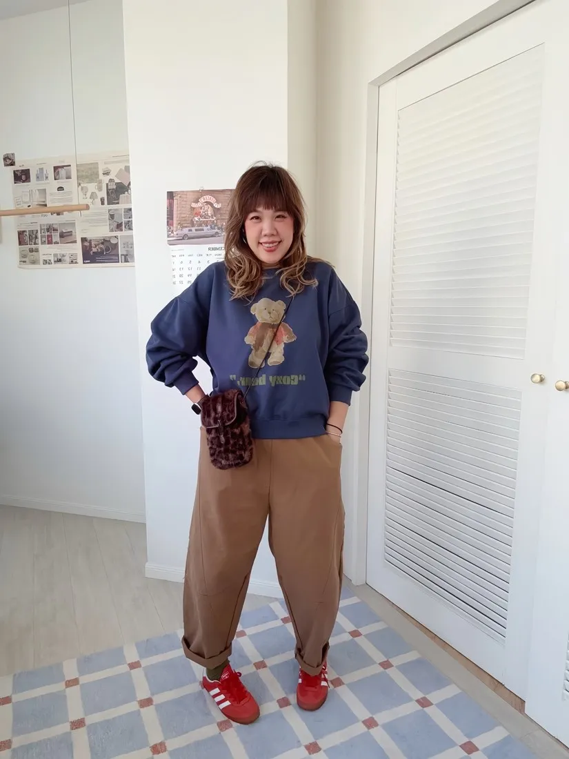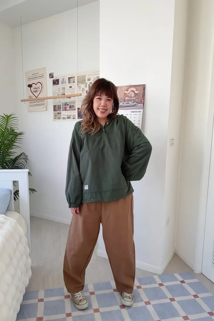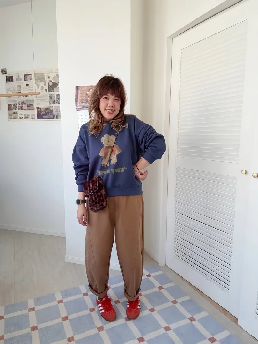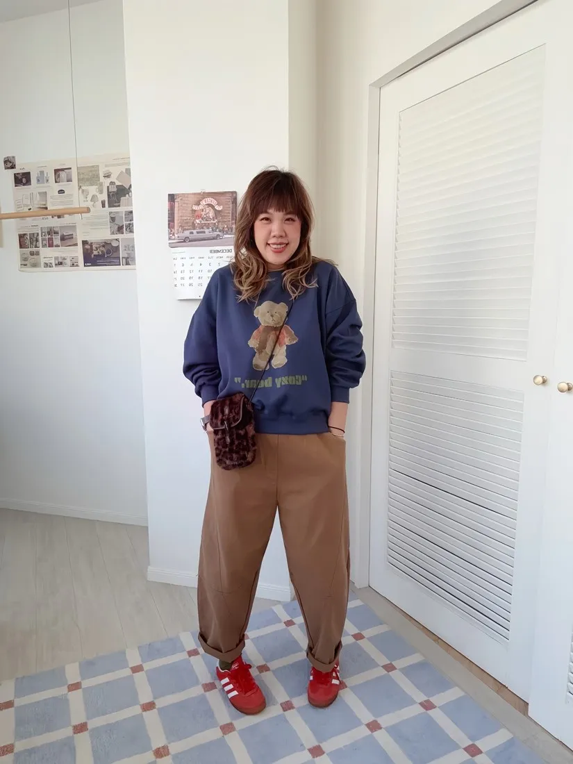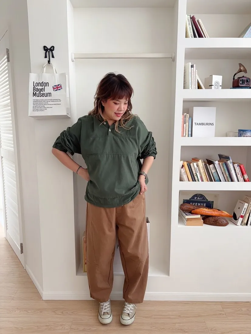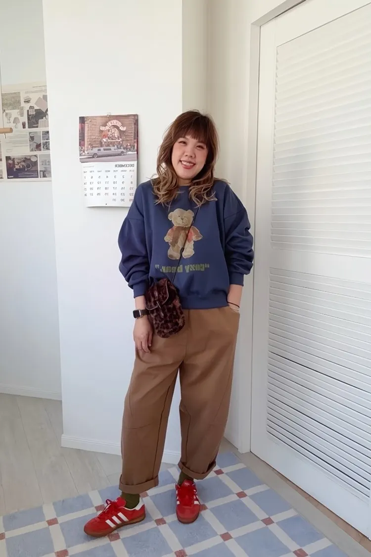 褲管的壓褶線,增加褲子造型感外,可以分散肉肉腿的視覺感
