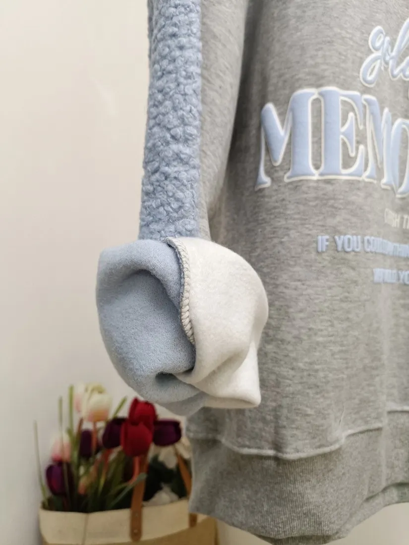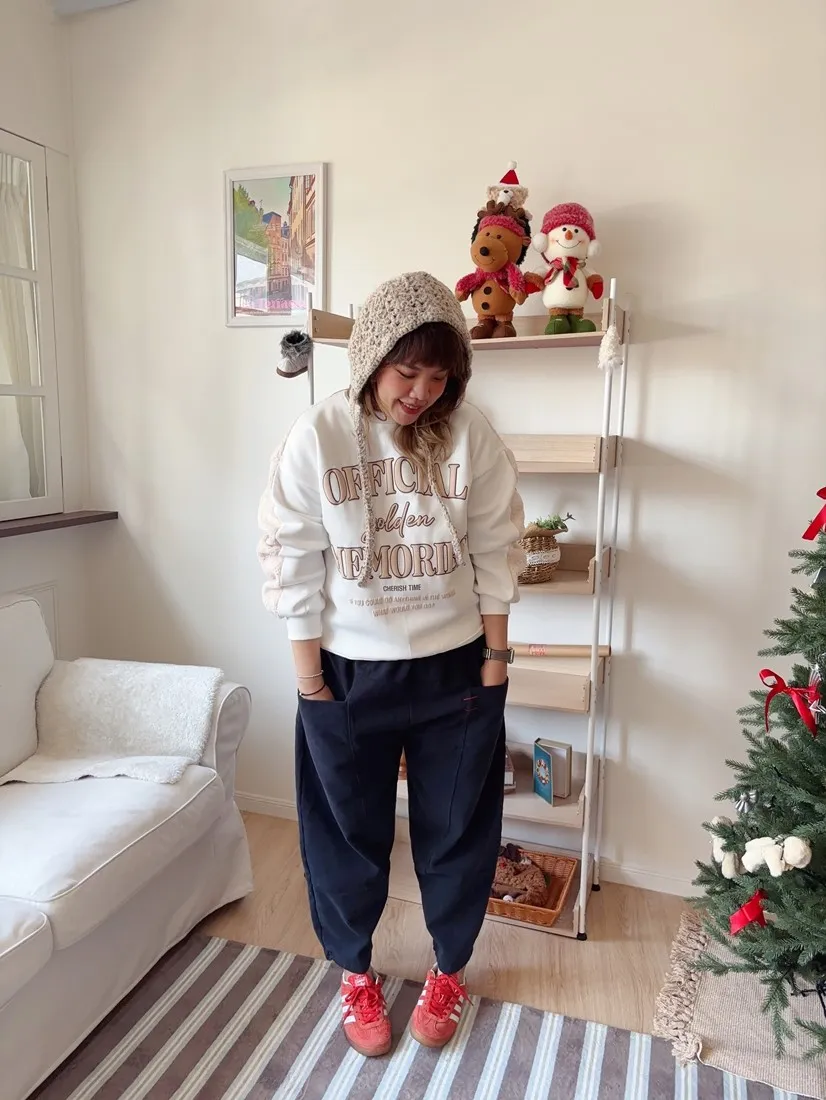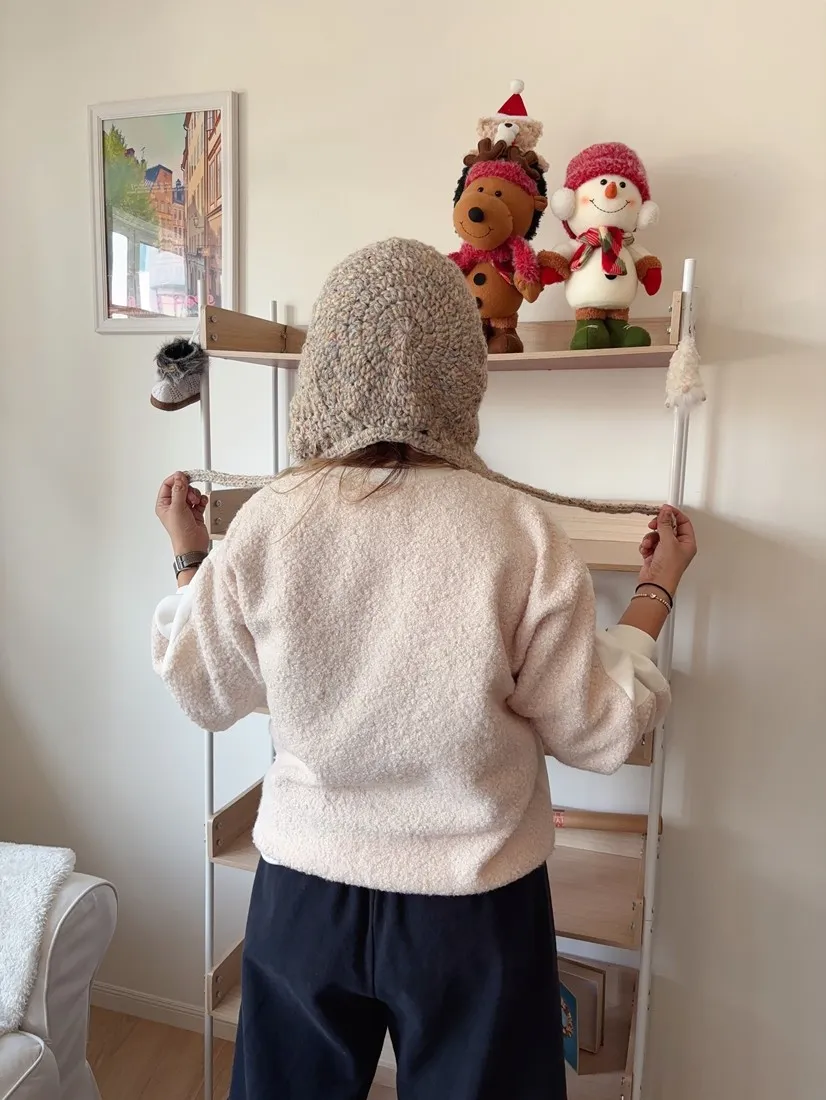 ✓ 異材質拼接,正面類太空棉棉質,內裡有刷毛;背面捲捲羊羔絨材質