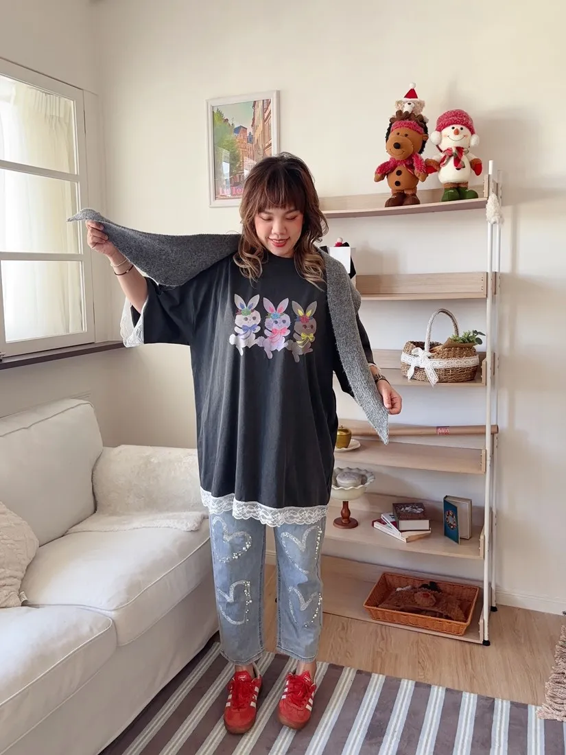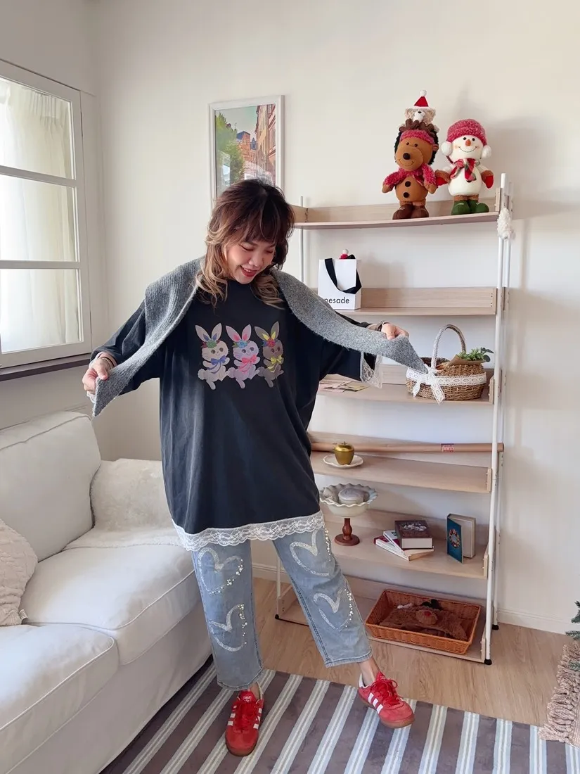 ✓ 質感兔子圖案印刷,圖案不會黏黏的