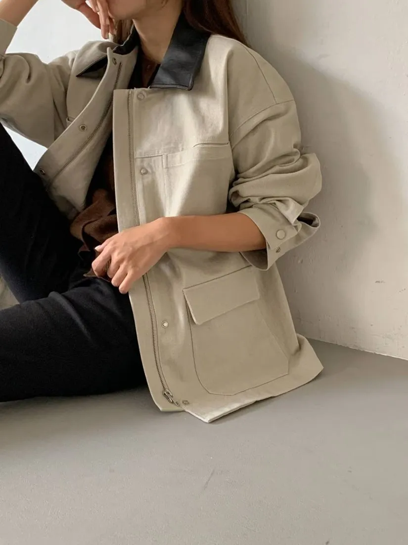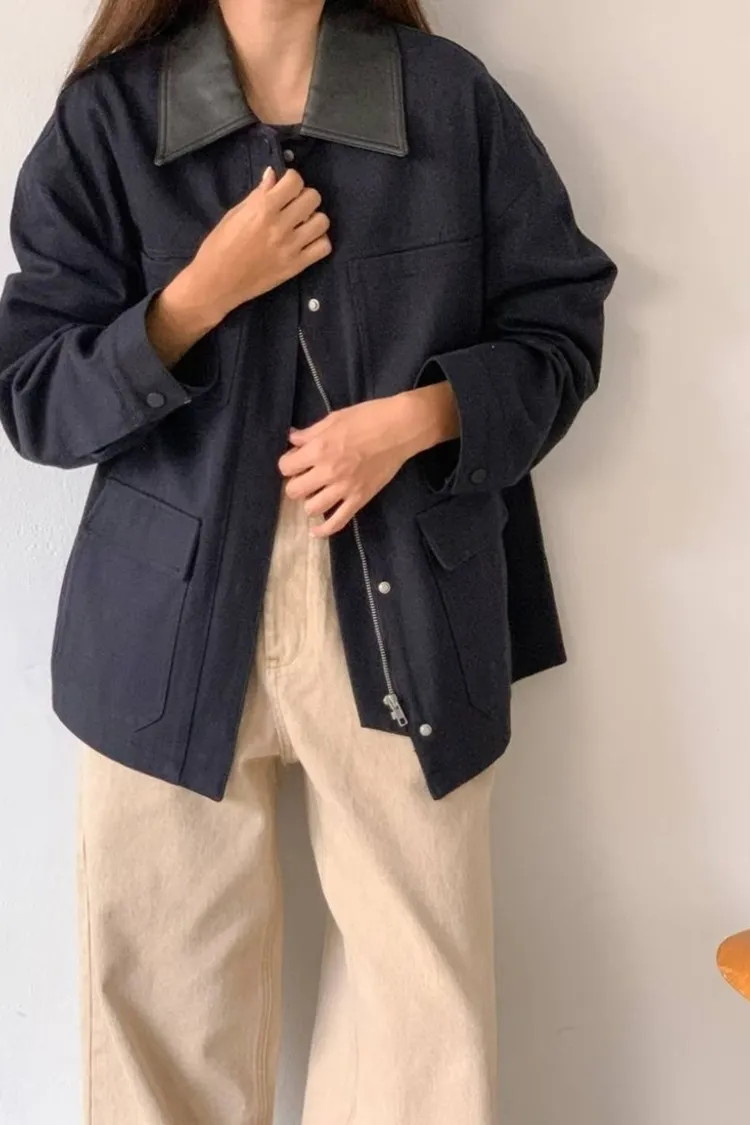 ✓ 挺版斜紋棉質+合成皮革領;有滑面內裡方便穿脫