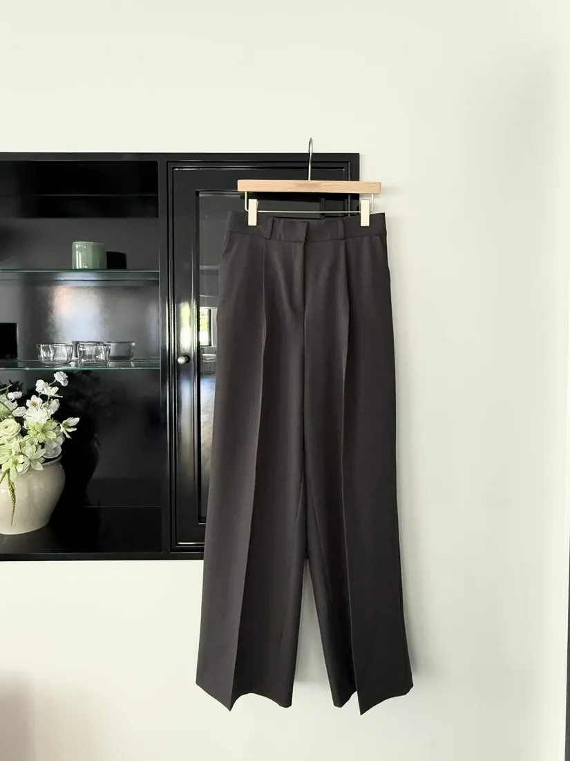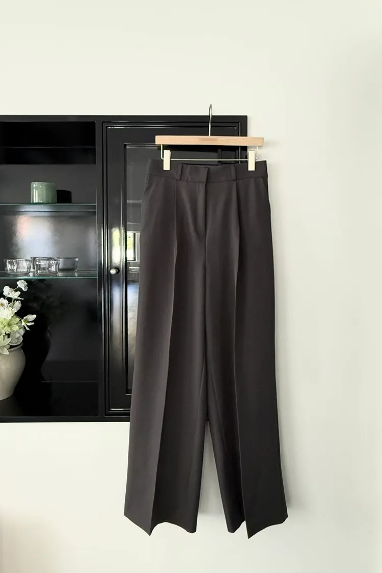 ✓ 直筒西褲,腹部打折設計;褲長偏長