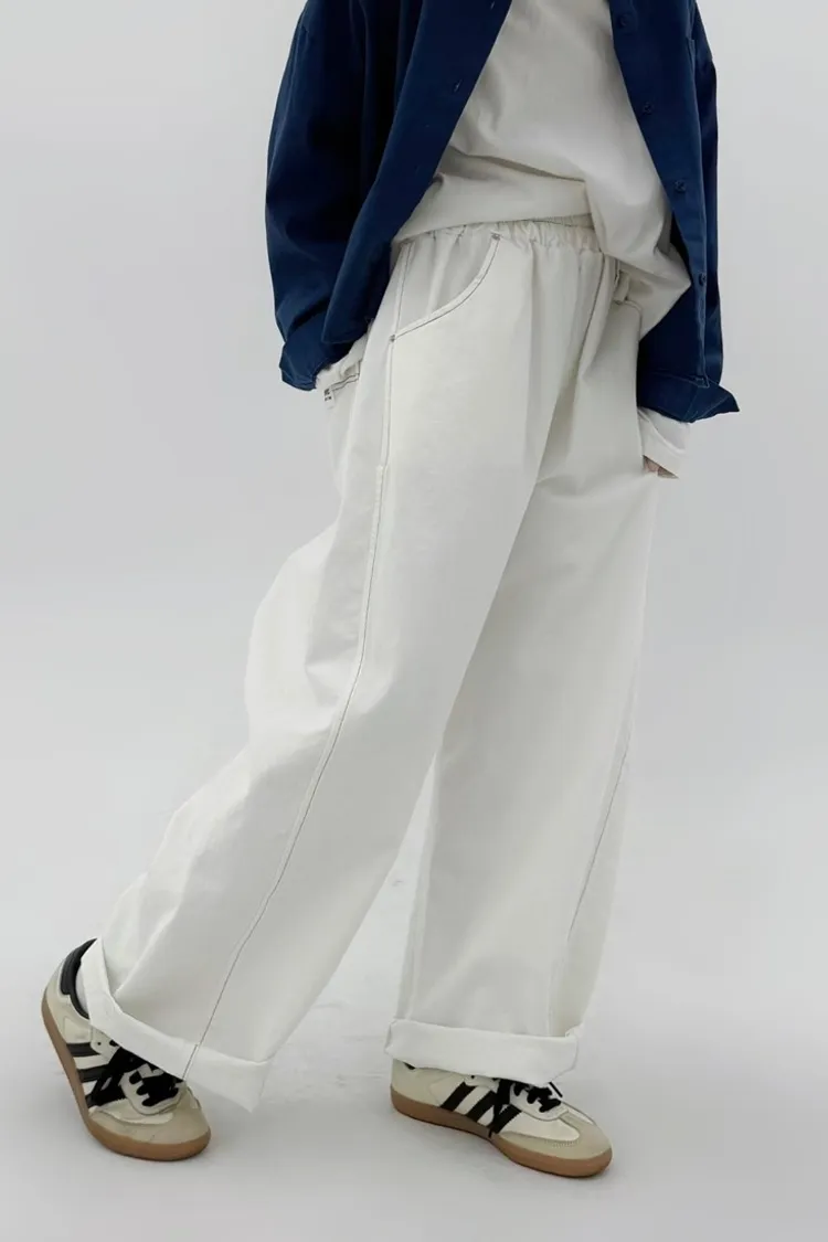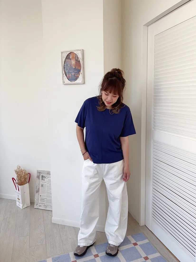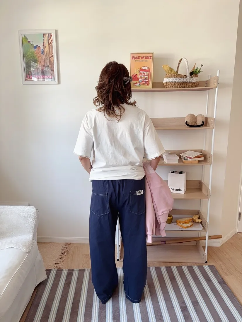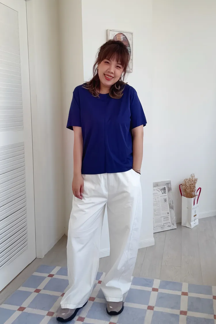 ✓ 直筒褲型,正面褲身往內車縫壓線,視覺上有往內收縮效果