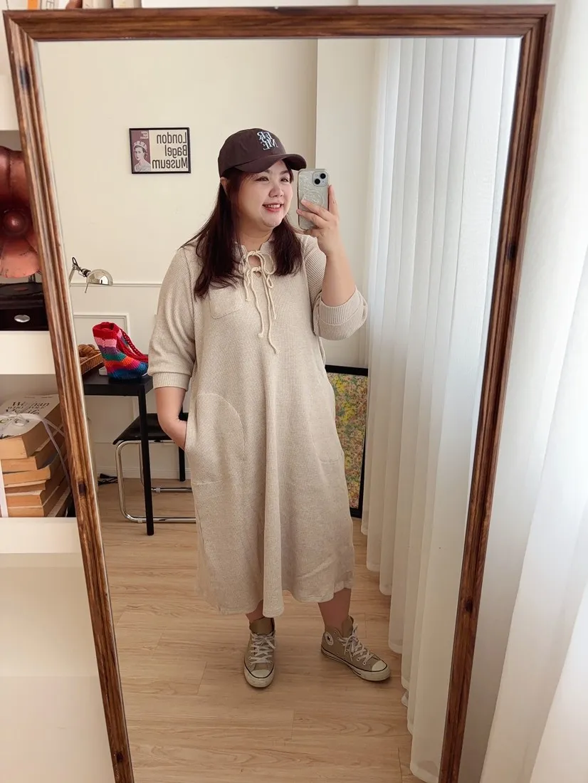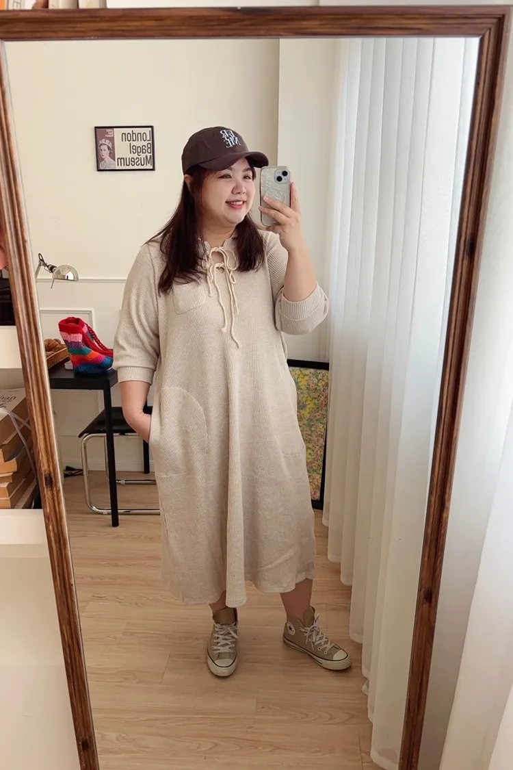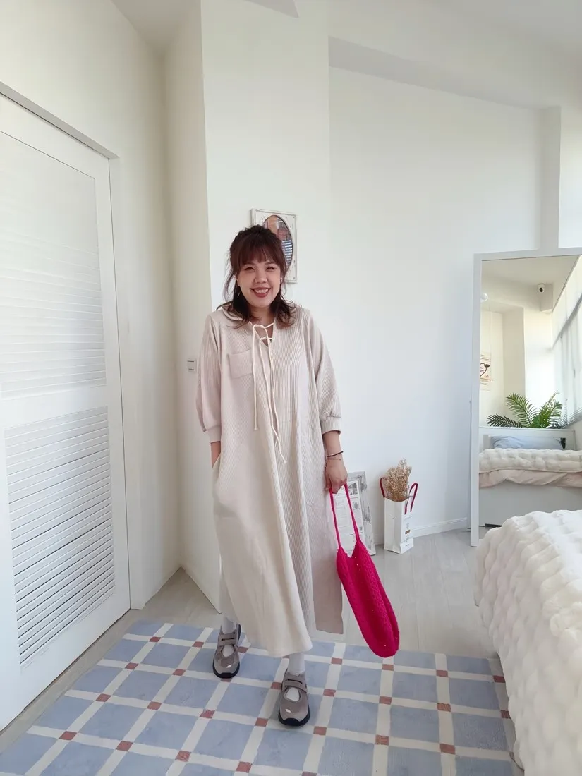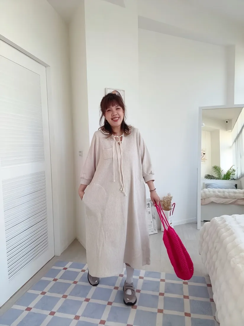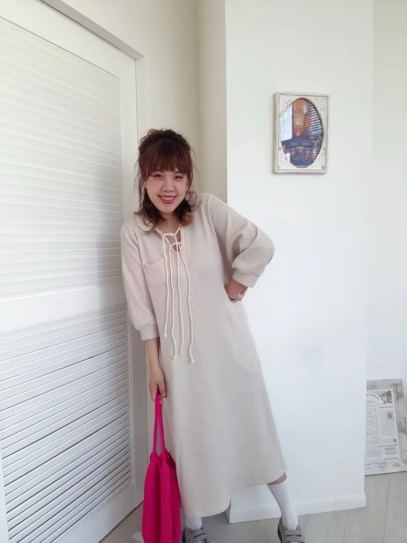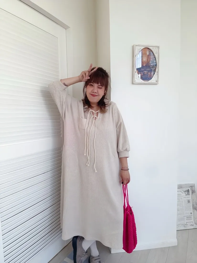 ✓ 布料有些微厚度,七分袖長,適合較冷的春秋穿著