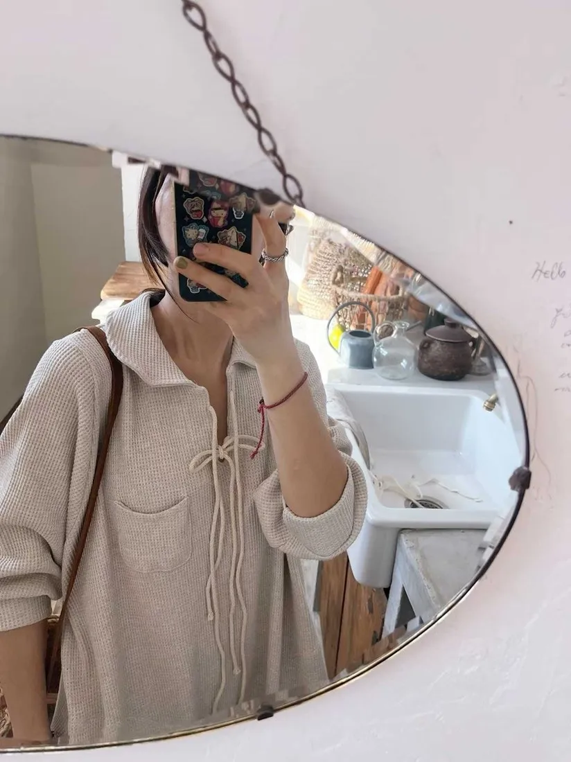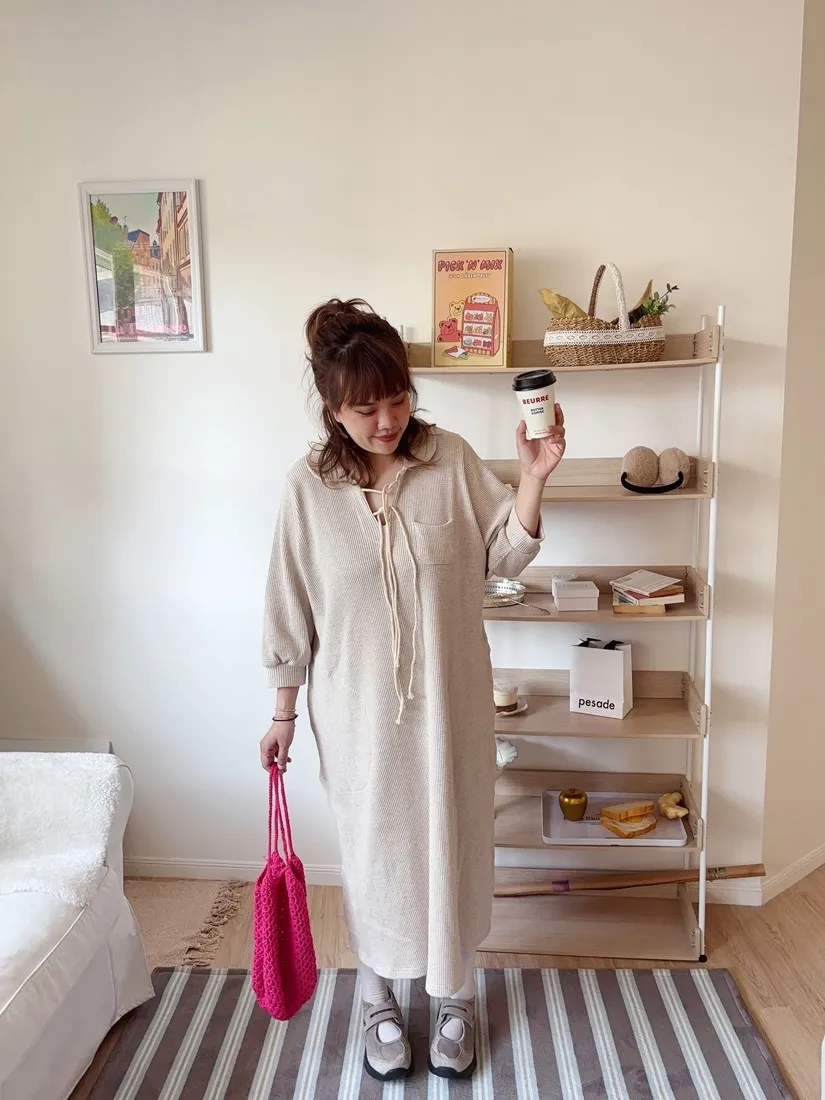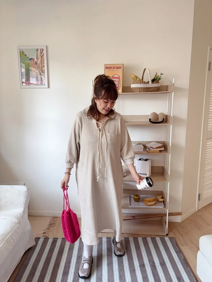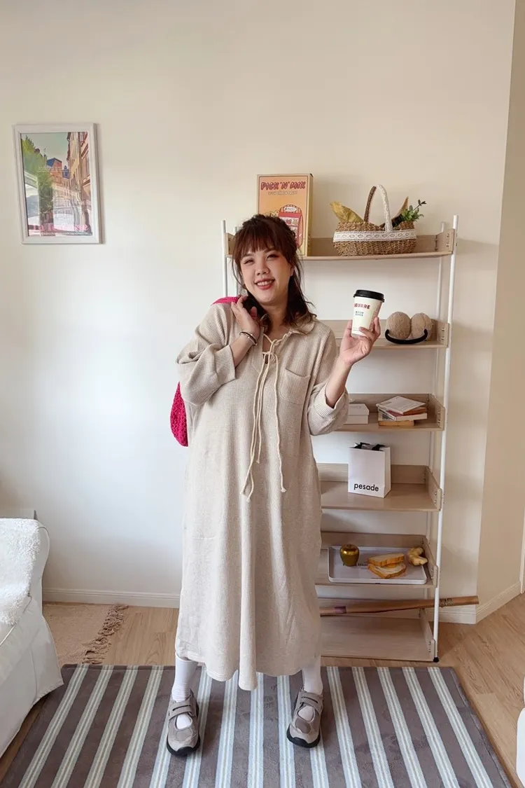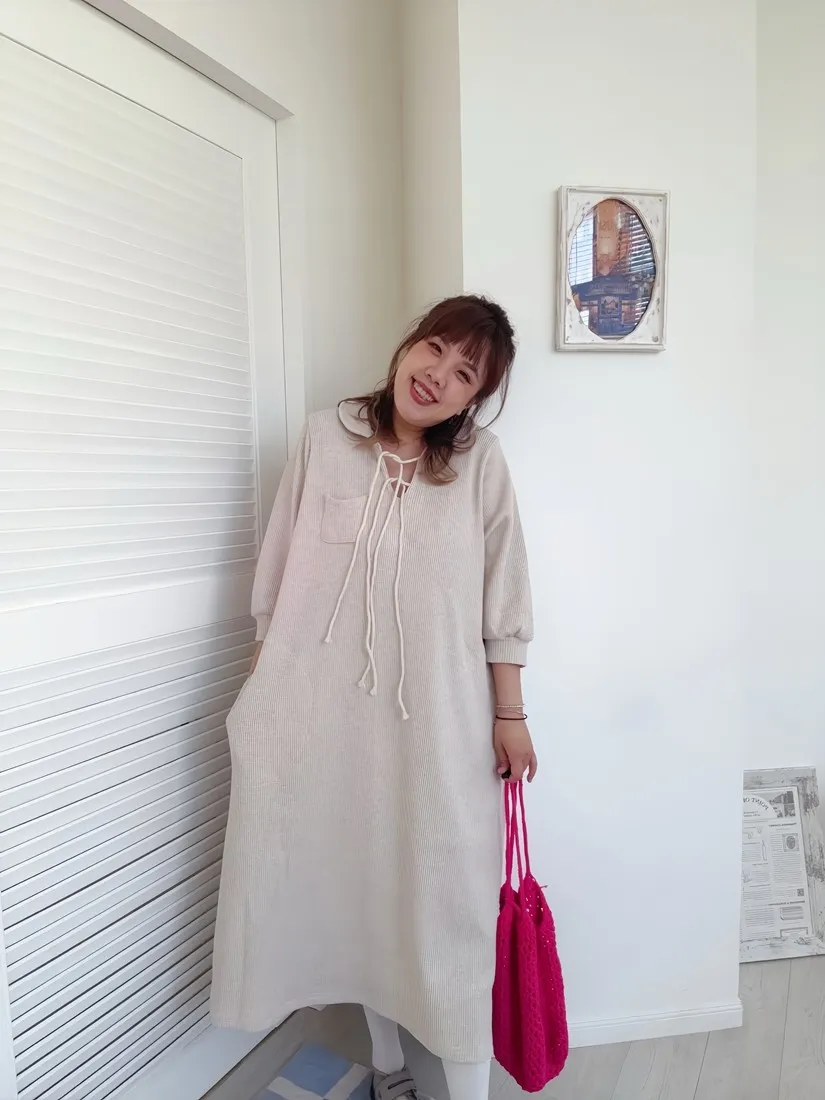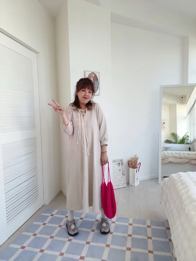 ✓ 布料有些微厚度,七分袖長,適合較冷的春秋穿著