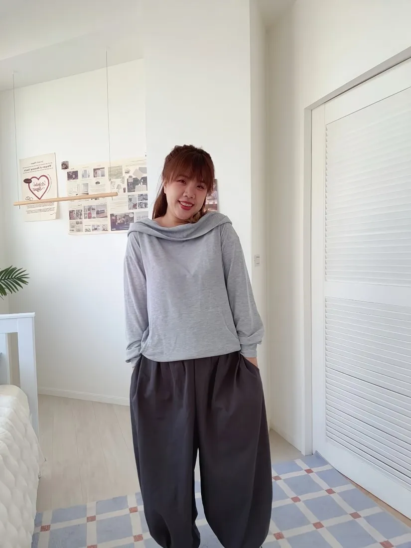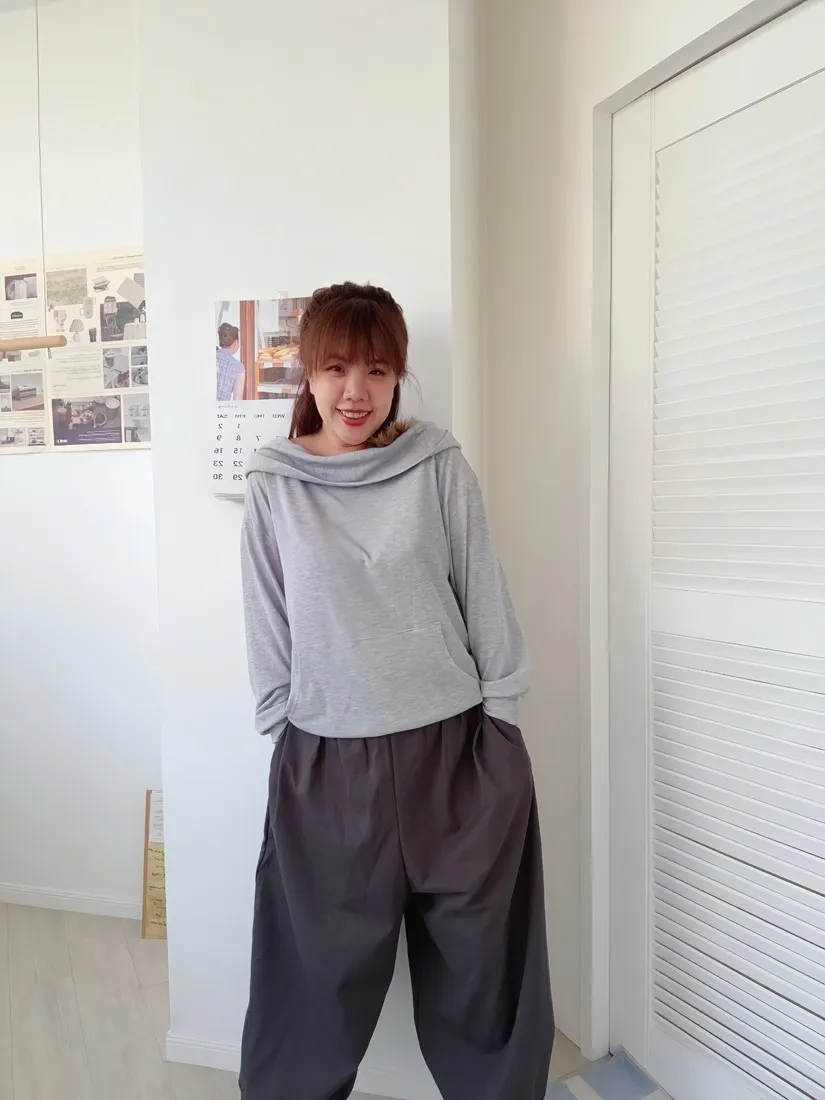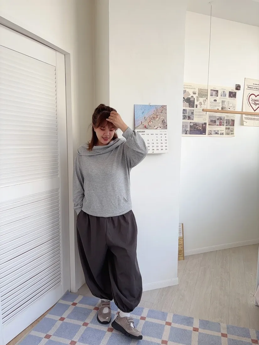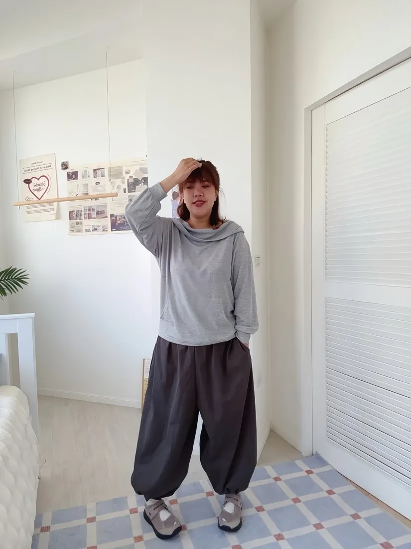 ✓ 寬鬆繭型褲型,褲管彈性伸縮