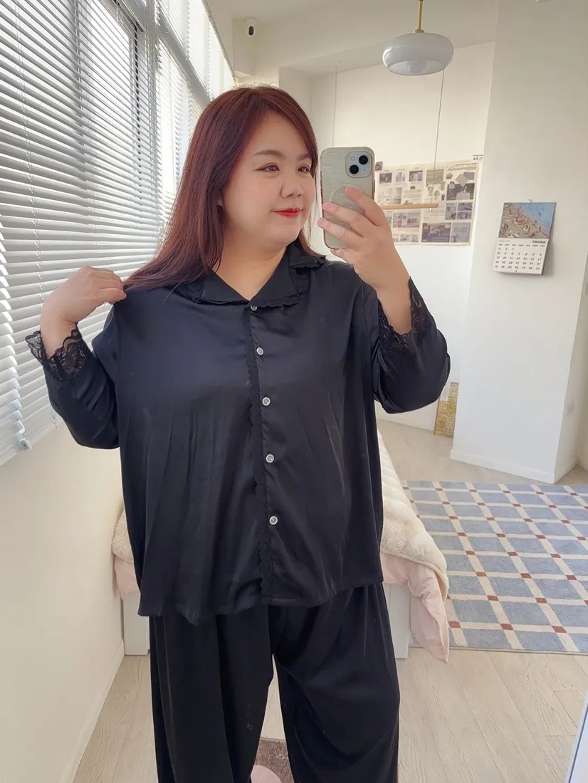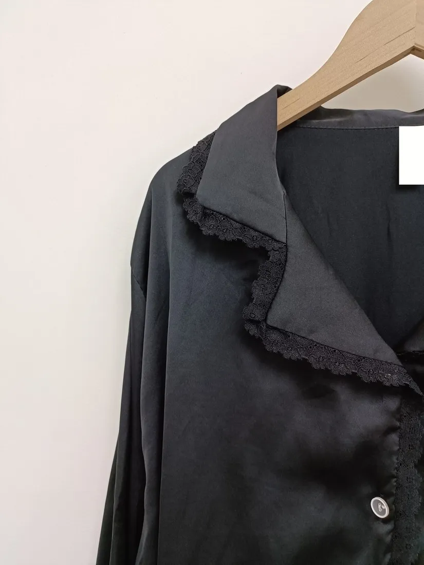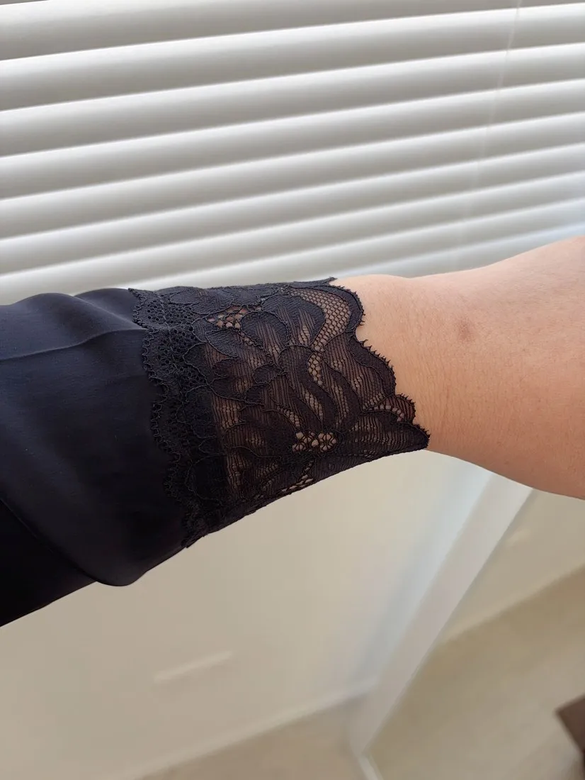 ✓ 上衣領口、袖口滾蕾絲邊
