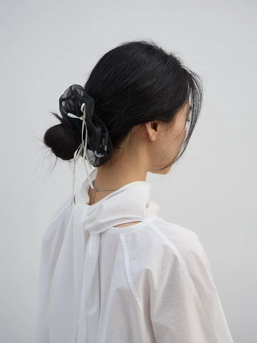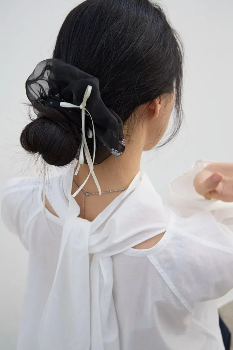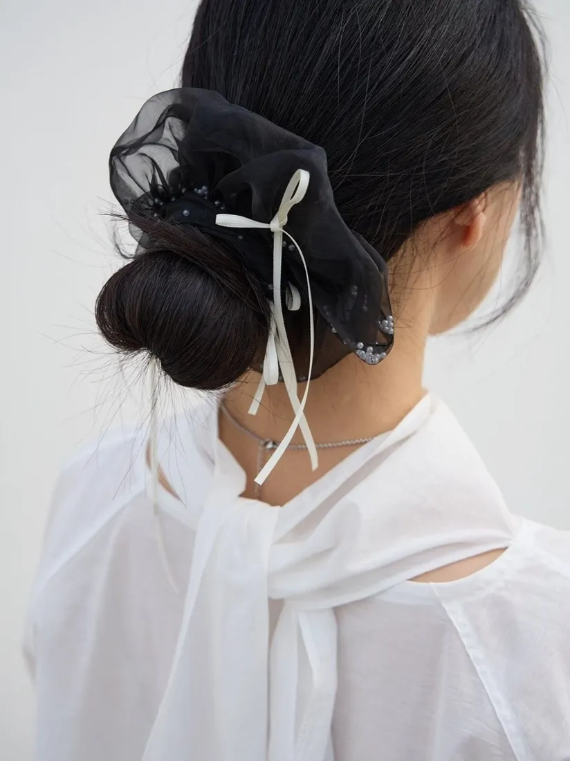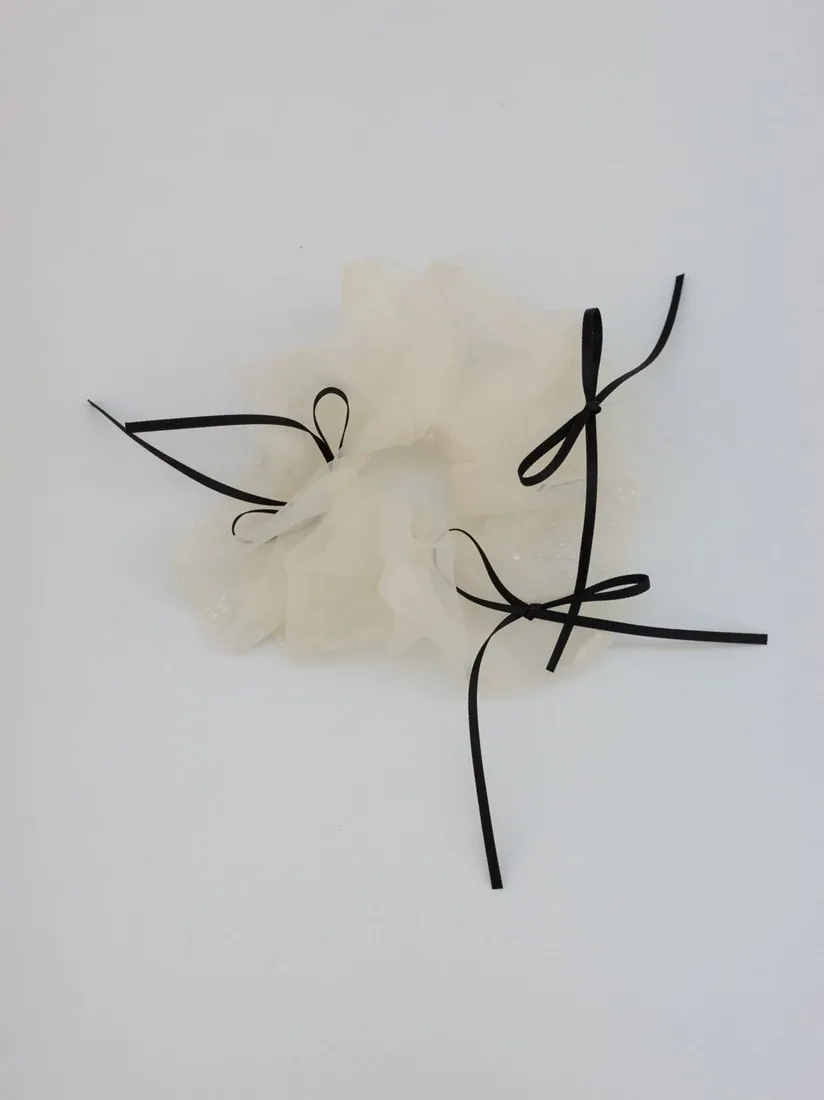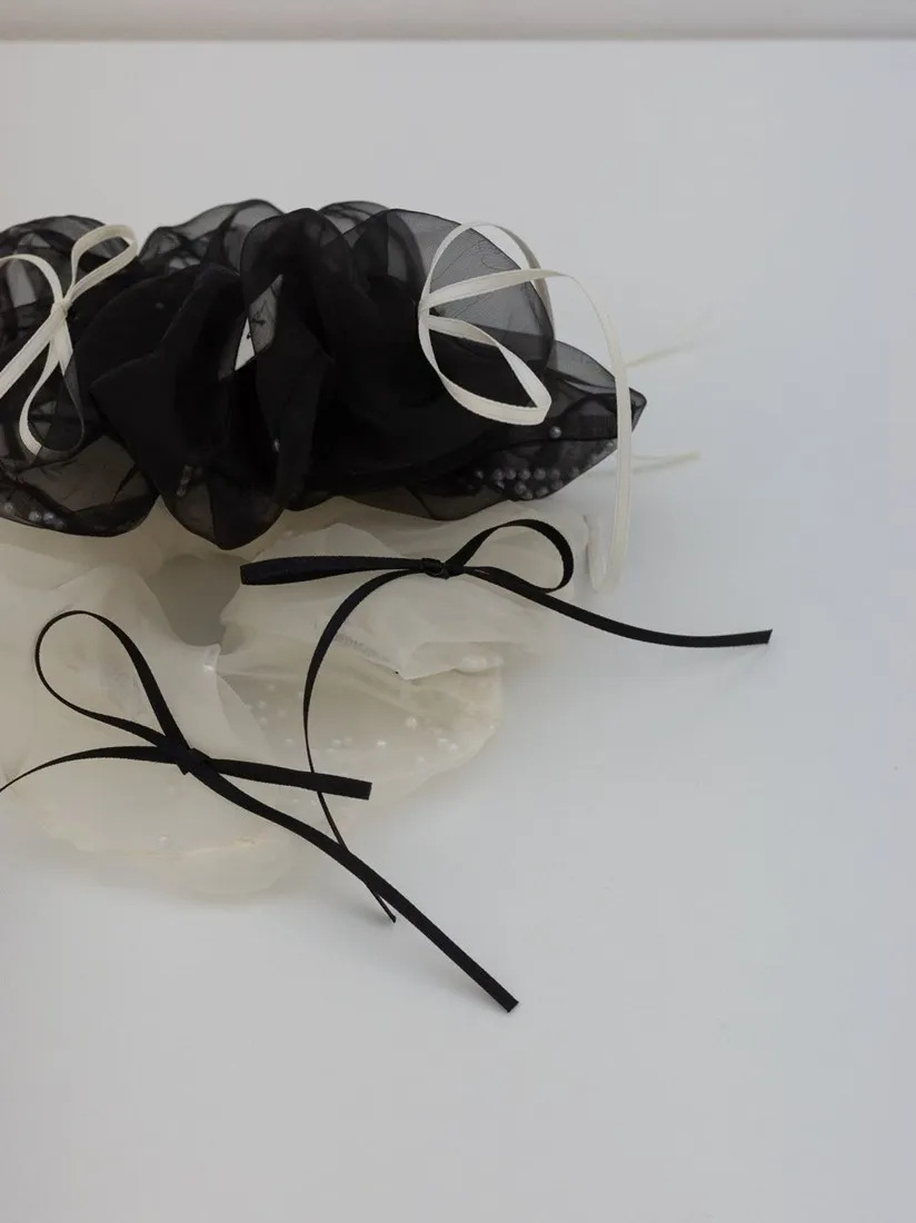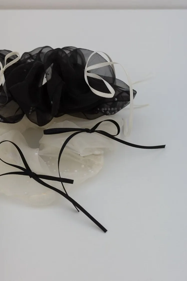 .材質:紗+緞帶蝴蝶結+白色小圓珠