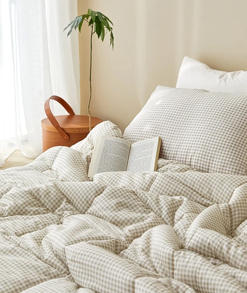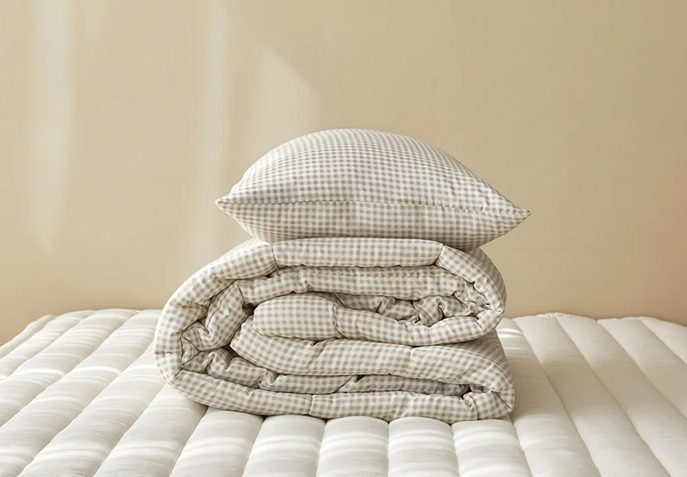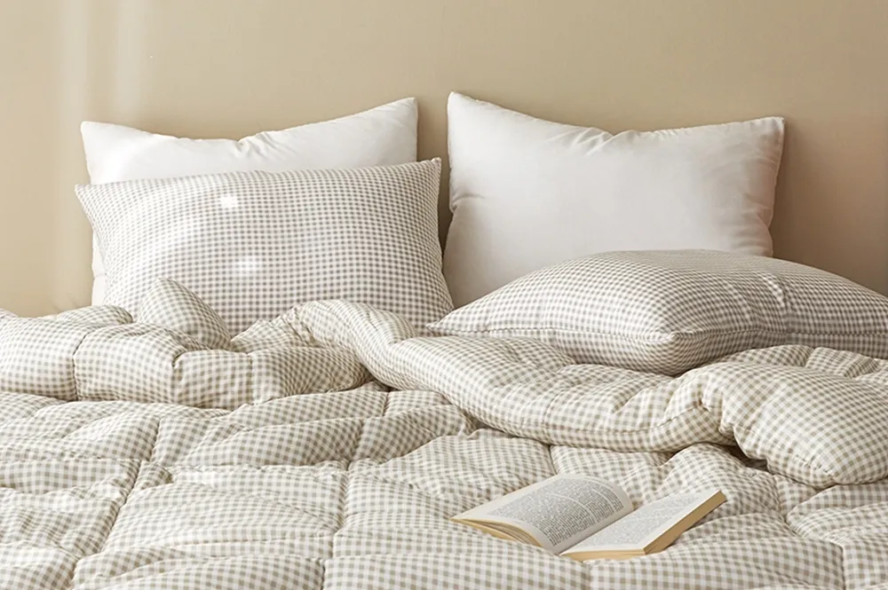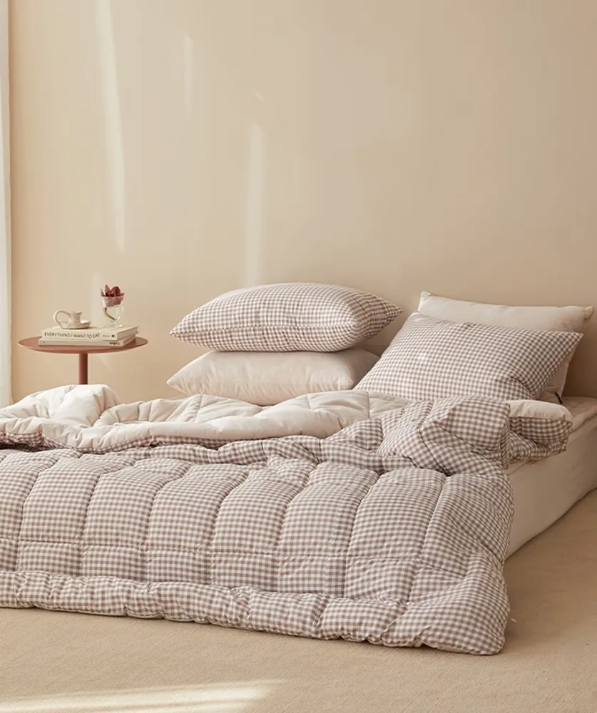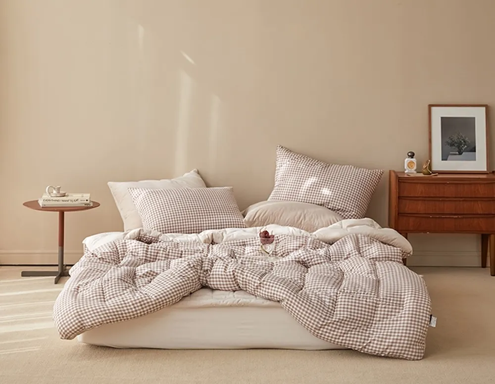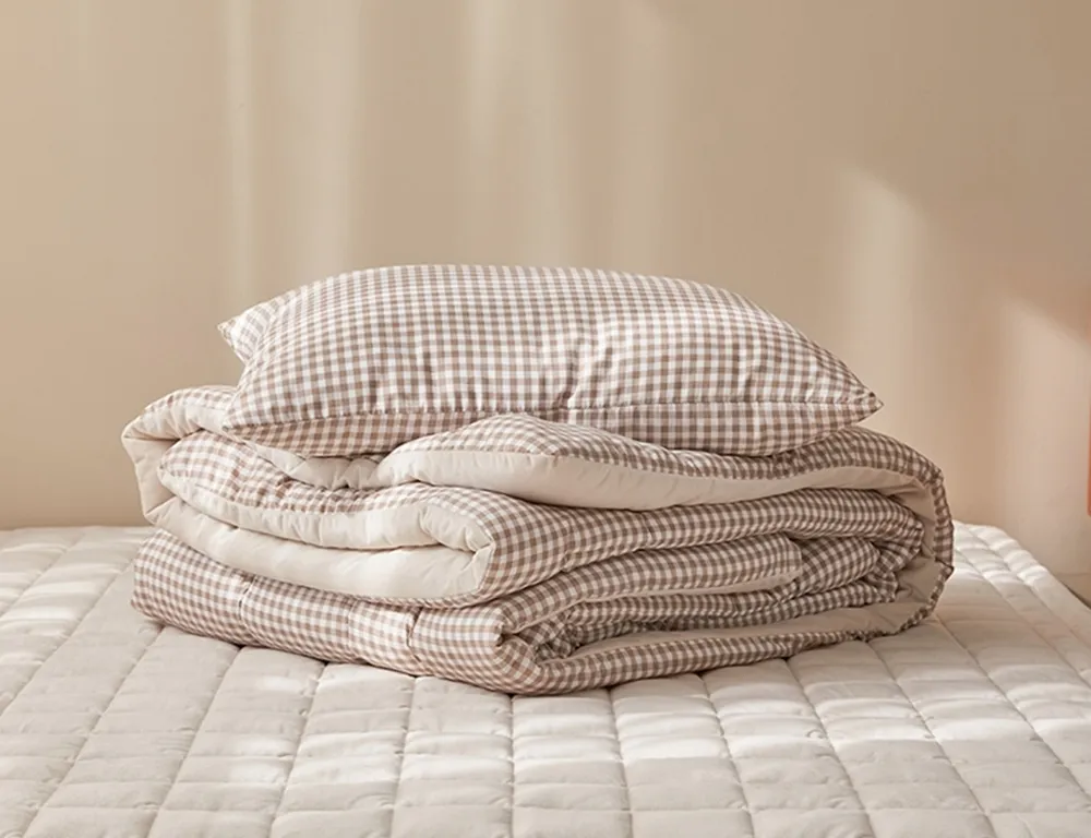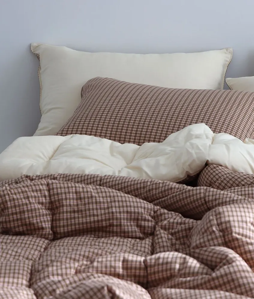 ⬇ 裸膚米色格紋,莫代爾100%,拉鍊在側邊處,50x70cm ⬇